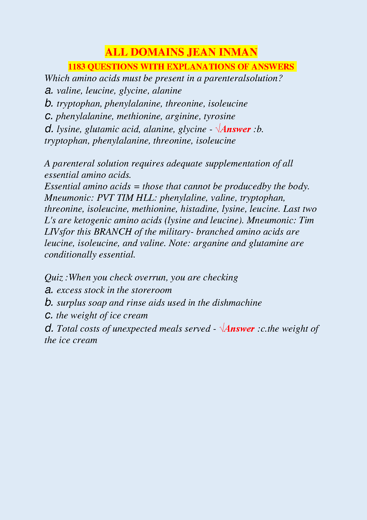 Ace your Registered Dietitian (RD) exam with confidence using the complete test bank for the Jean Inman Review Course. This latest 2024-2025 edition provides an extensive collection of 1183 practice questions covering all essential domains. Each question includes a detailed explanation and rationale, designed to deepen your understanding of core dietetics and nutrition concepts. Master the material and prepare effectively to pass your RD exam on the first try with this comprehensive Q&A guide.