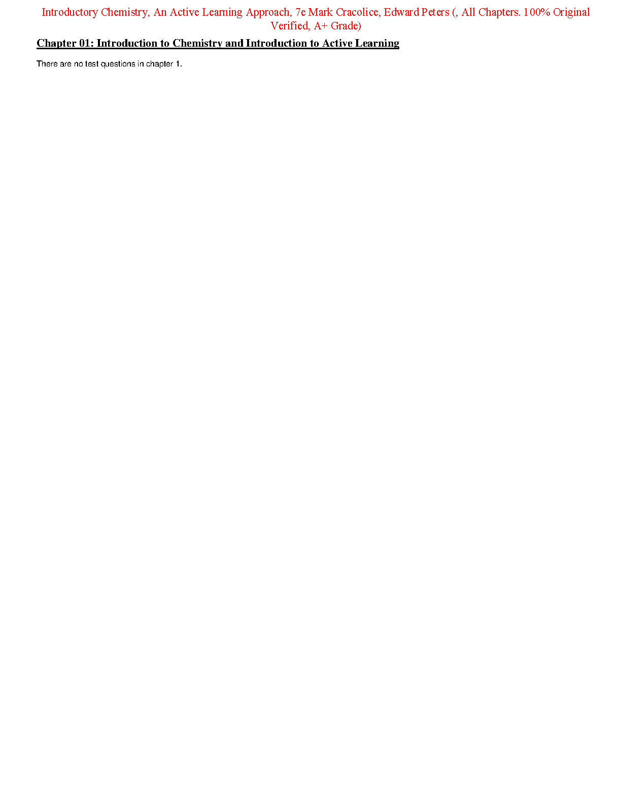 Test Bank for Introductory Chemistry: An Active Learning Approach, 7th Edition by Mark S. Cracolice & Edward I. Peters (All Chapters)
