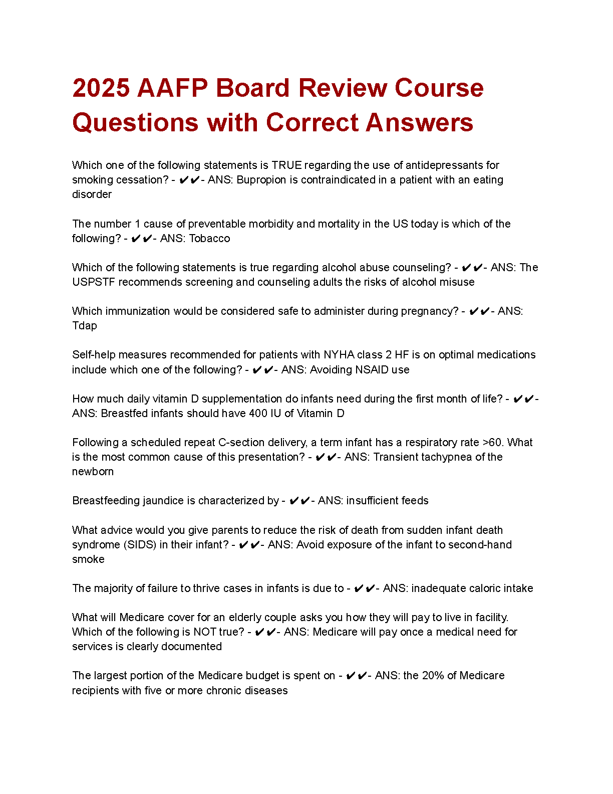 Ace your Family Medicine board exams with the ultimate study resource for the 2025/2026 academic year! This comprehensive test bank is derived directly from the 2025 AAFP Board Review Course and contains a full collection of exam-style questions with verified correct answers. Master crucial topics from smoking cessation and preventive care to pediatrics and geriatrics. This essential guide is specifically designed to help you study efficiently, build confidence, and pass your Family Medicine certification exam on your first attempt, eliminating the need for costly and stressful resits. Get instant access and start preparing for success today!
