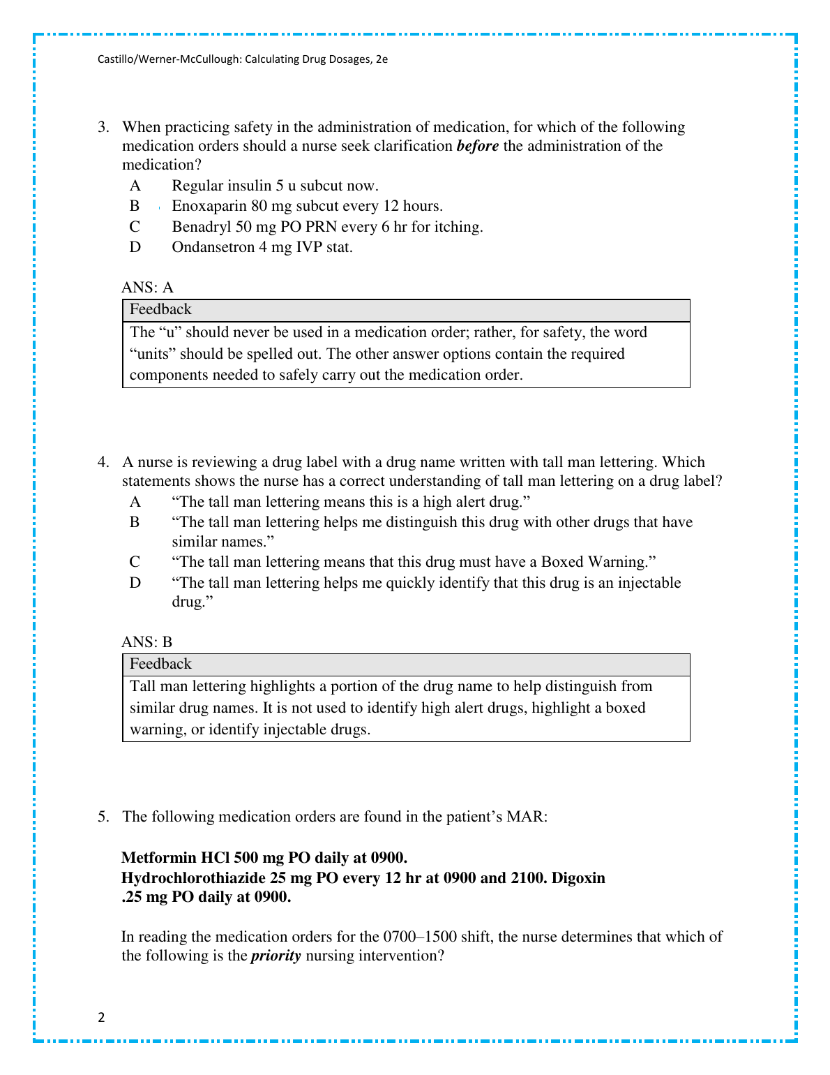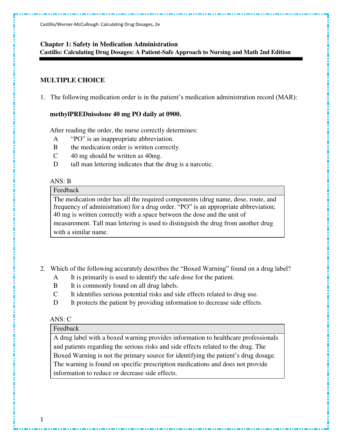 Test Bank for Calculating Drug Dosages: A Patient-Safe Approach to Nursing and Math, 2nd Edition by Sandra Luz Martinez de Castillo & Maryann Werner-McCullough