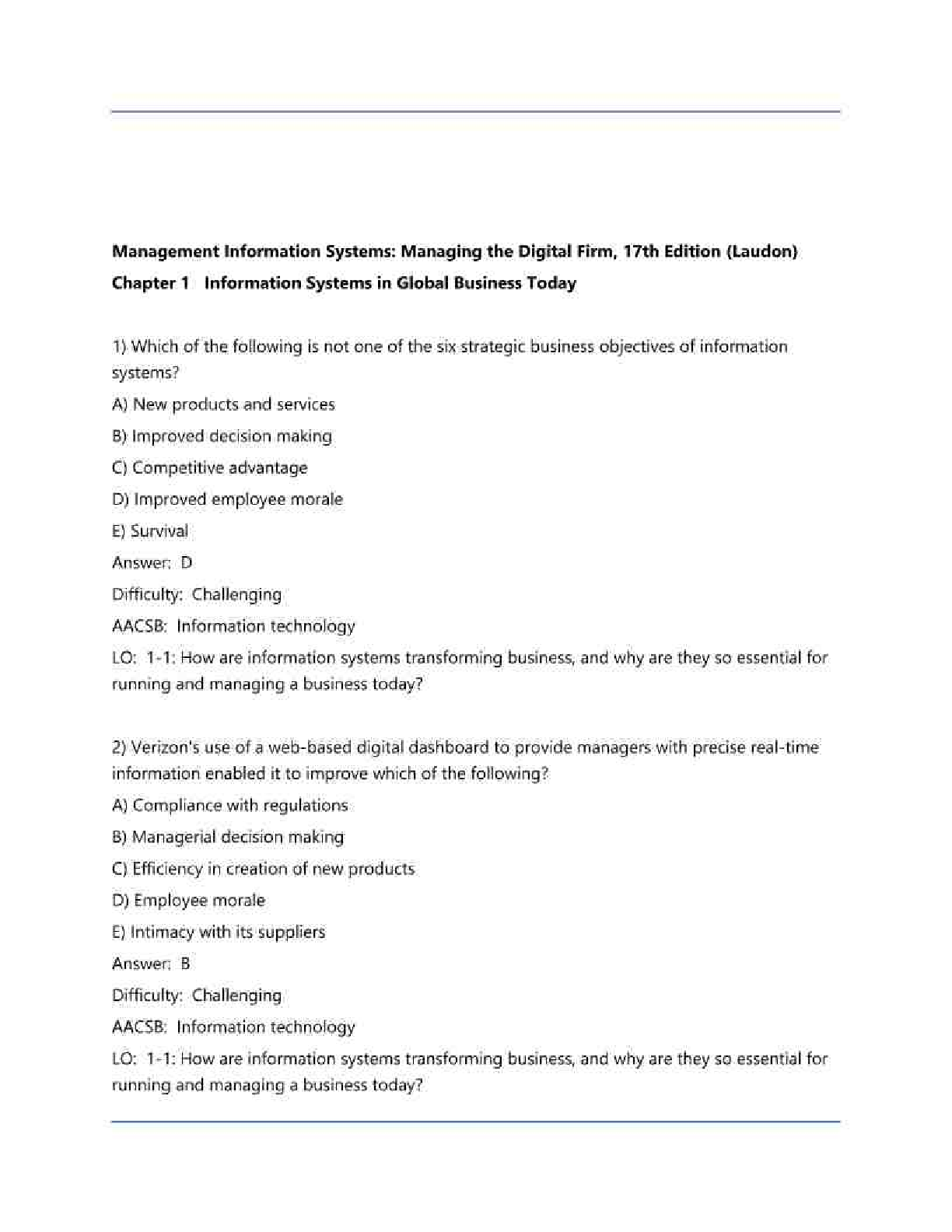 Test Bank for Management Information Systems: Managing the Digital Firm, 17th Edition by Kenneth C. Laudon & Jane P. Laudon