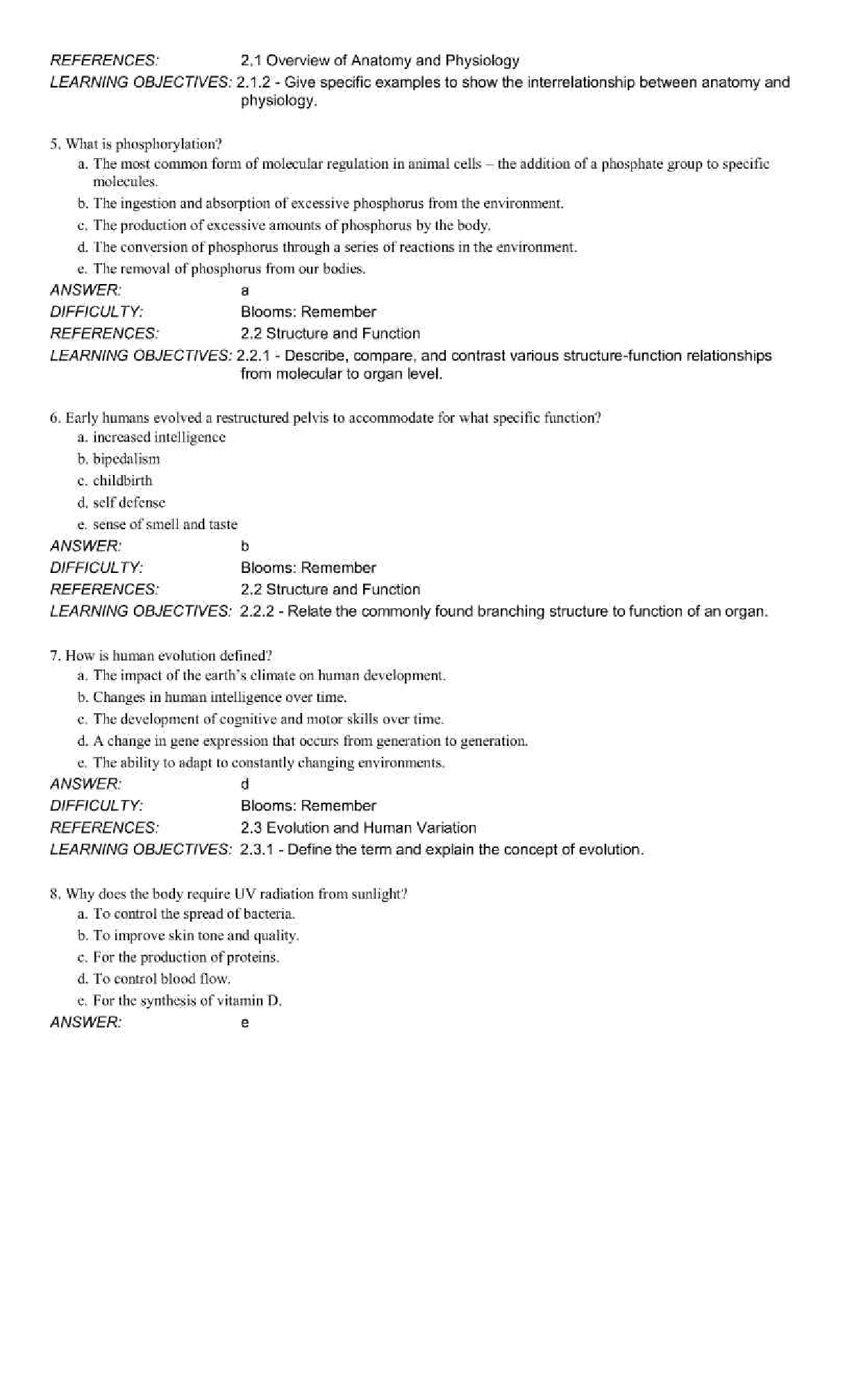 Test Bank for Anatomy and Physiology, 1st Edition by Elizabeth Co and William C. Rose