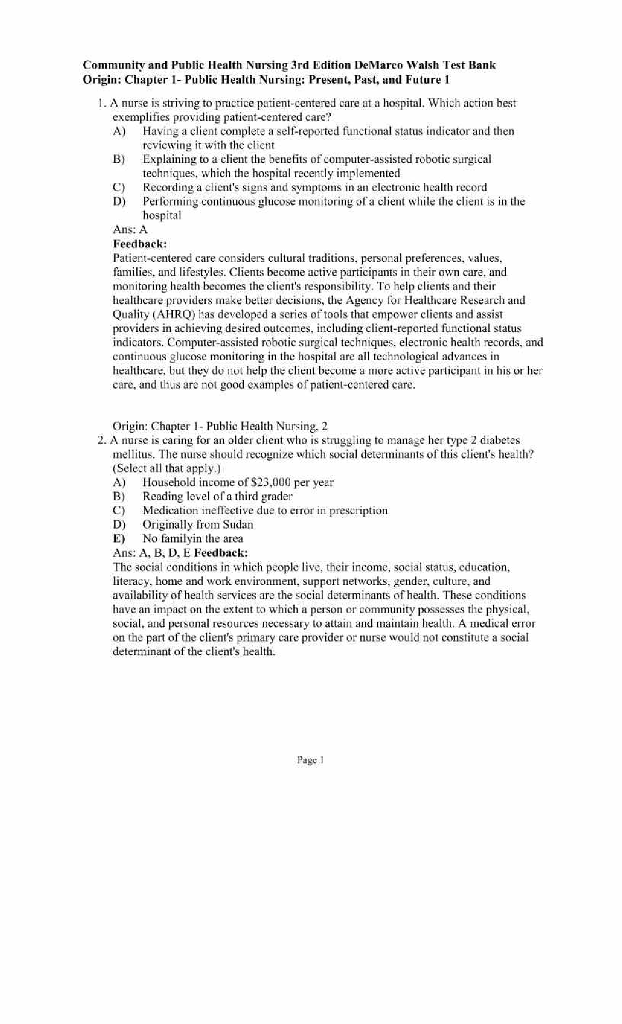 Unlock academic success with the complete Test Bank for 'Community and Public Health Nursing: Evidence for Practice,' 4th Edition, by Rosanna F. DeMarco and Judith Healey-Walsh. This indispensable study aid is packed with a wide range of practice questions and detailed answers covering every chapter. Perfect for nursing students aiming to master course material, this test bank allows you to effectively prepare for exams, reinforce your knowledge, and boost your confidence. Get instant access to the tools you need to excel in your public health nursing studies.