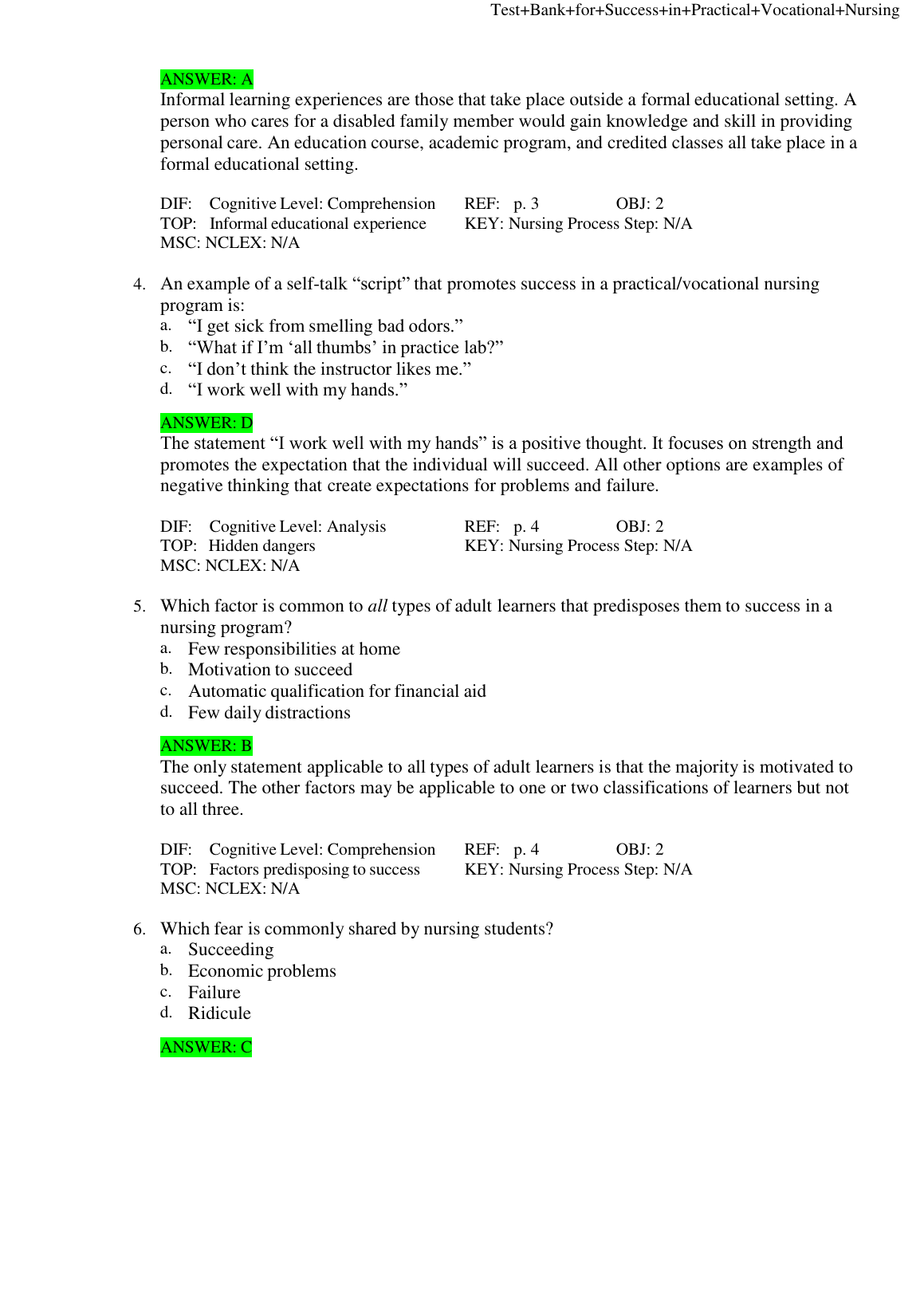 Gain a significant advantage in your nursing studies with the official Test Bank for 'Success in Practical/Vocational Nursing: From Student to Leader,' 10th Edition by Janyce L. Carroll and Lisa Collier. This indispensable resource provides a vast array of exam-style questions, complete with detailed rationales, covering every chapter of the textbook. It's expertly designed to help you master core concepts, reinforce your learning, and build the confidence needed to excel on your exams. Move beyond simple memorization and develop the critical thinking skills essential for a successful nursing career. Download now to start preparing effectively and achieve top grades.