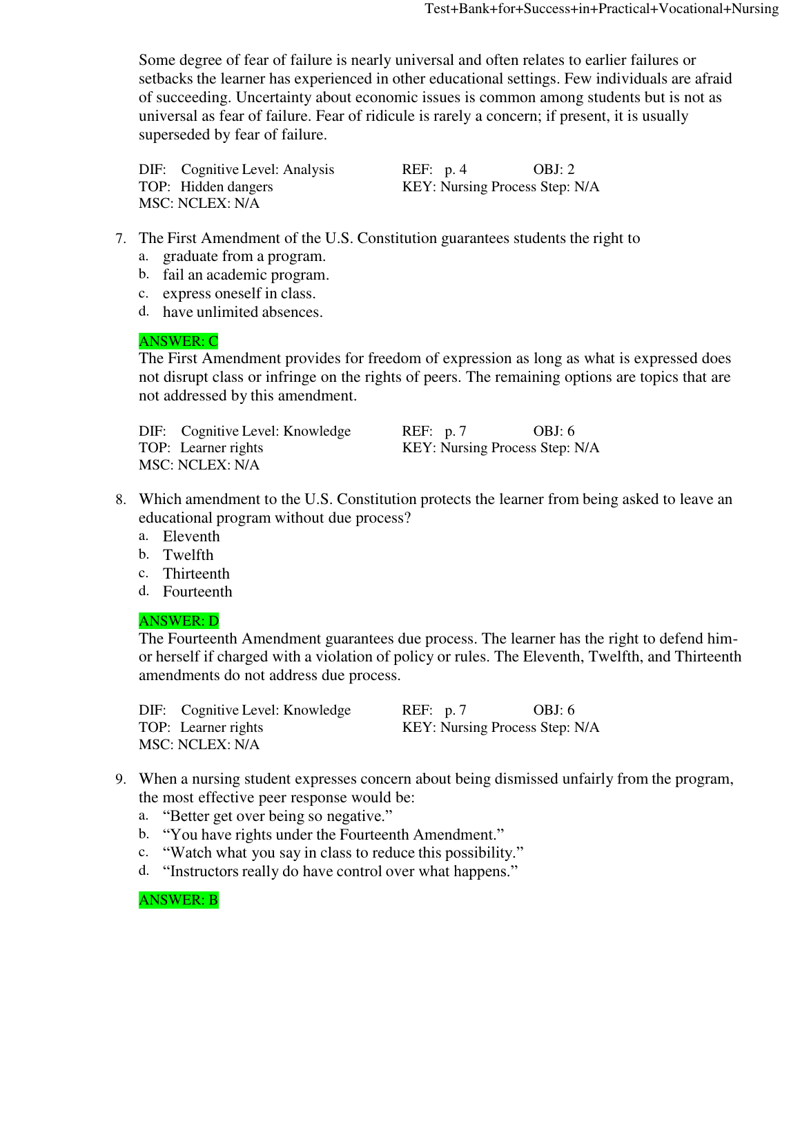 Test Bank for Success in Practical/Vocational Nursing: From Student to Leader, 10th Edition by Janyce L. Carroll and Lisa Collier