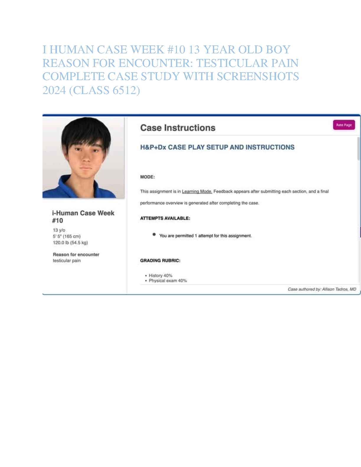 iHuman Week 10 Case Study by Allison Tadros, MD: Testicular Pain in a 13-Year-Old | Latest 2025/2026 Guide to Ace Your Exams