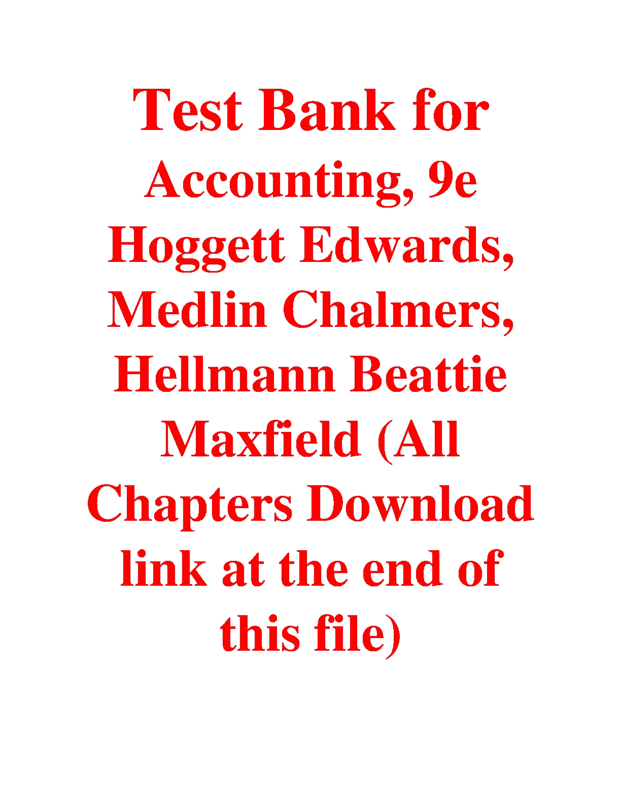 Test Bank for Accounting, 9th Edition BY Hoggett Edwards, Medlin Chalmers, Hellmann Beattie Maxfield (All Chapters Download link at the end of this file)