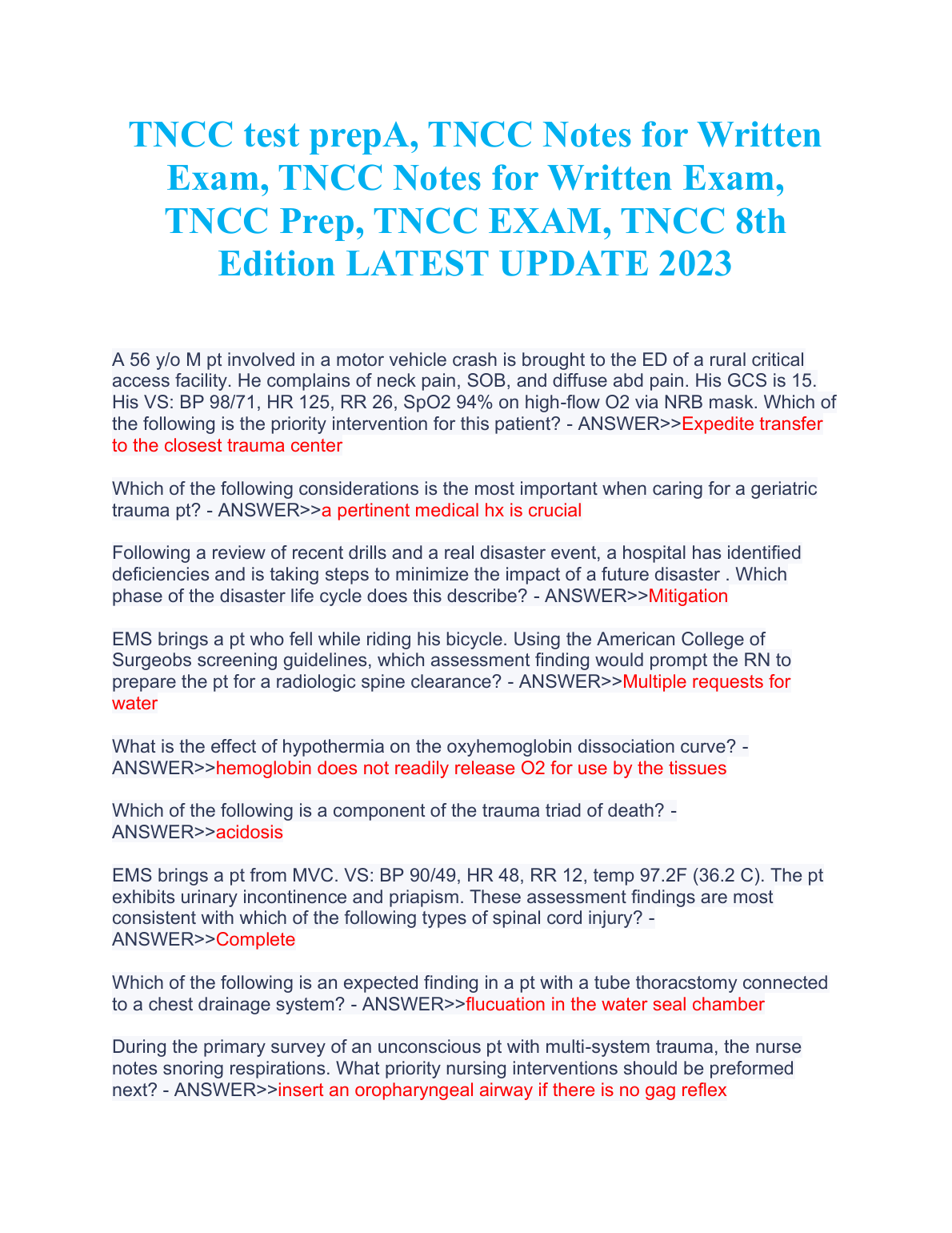 TNCC 8th Edition Test Bank by the Emergency Nurses Association (ENA) | Questions & Answers for Exam Success