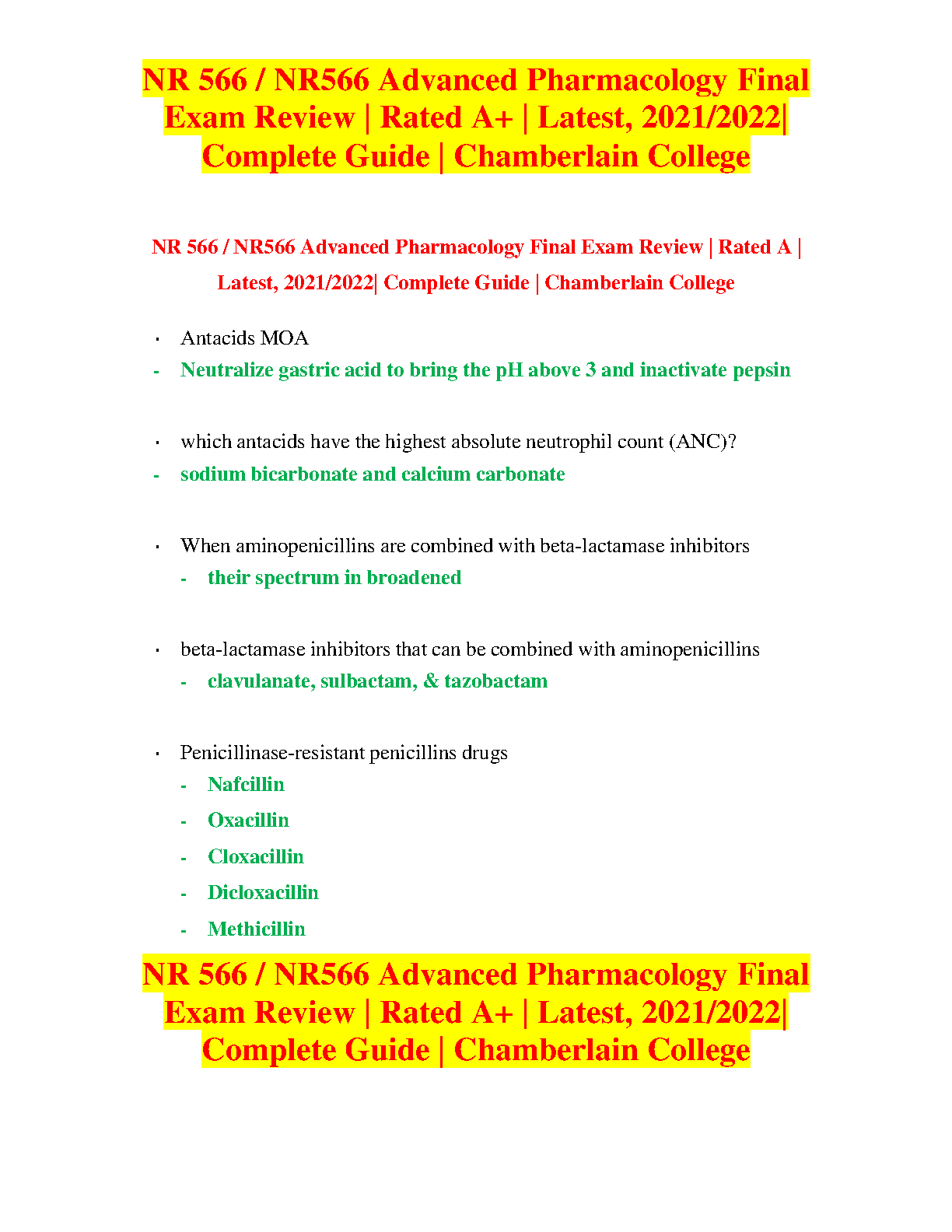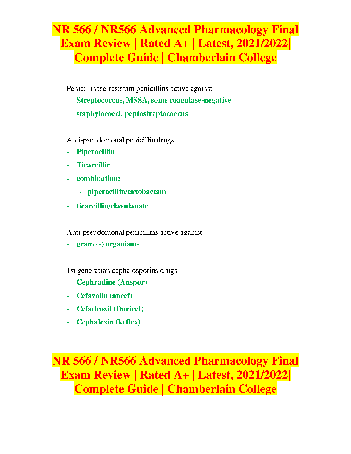 Ace your NR 566 Advanced Pharmacology final exam with this complete A+ graded review guide. This comprehensive resource, updated for the 2025/2026 academic year, covers all essential topics in-depth to ensure you understand the material thoroughly. It's specifically designed to help nursing students pass their exams confidently on the first attempt, eliminating the need for resits. Master advanced pharmacology concepts and achieve top grades with this essential study tool.