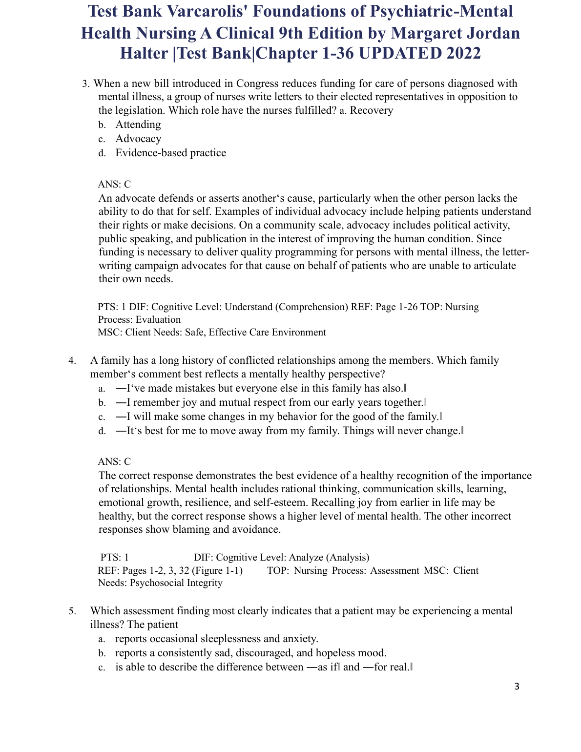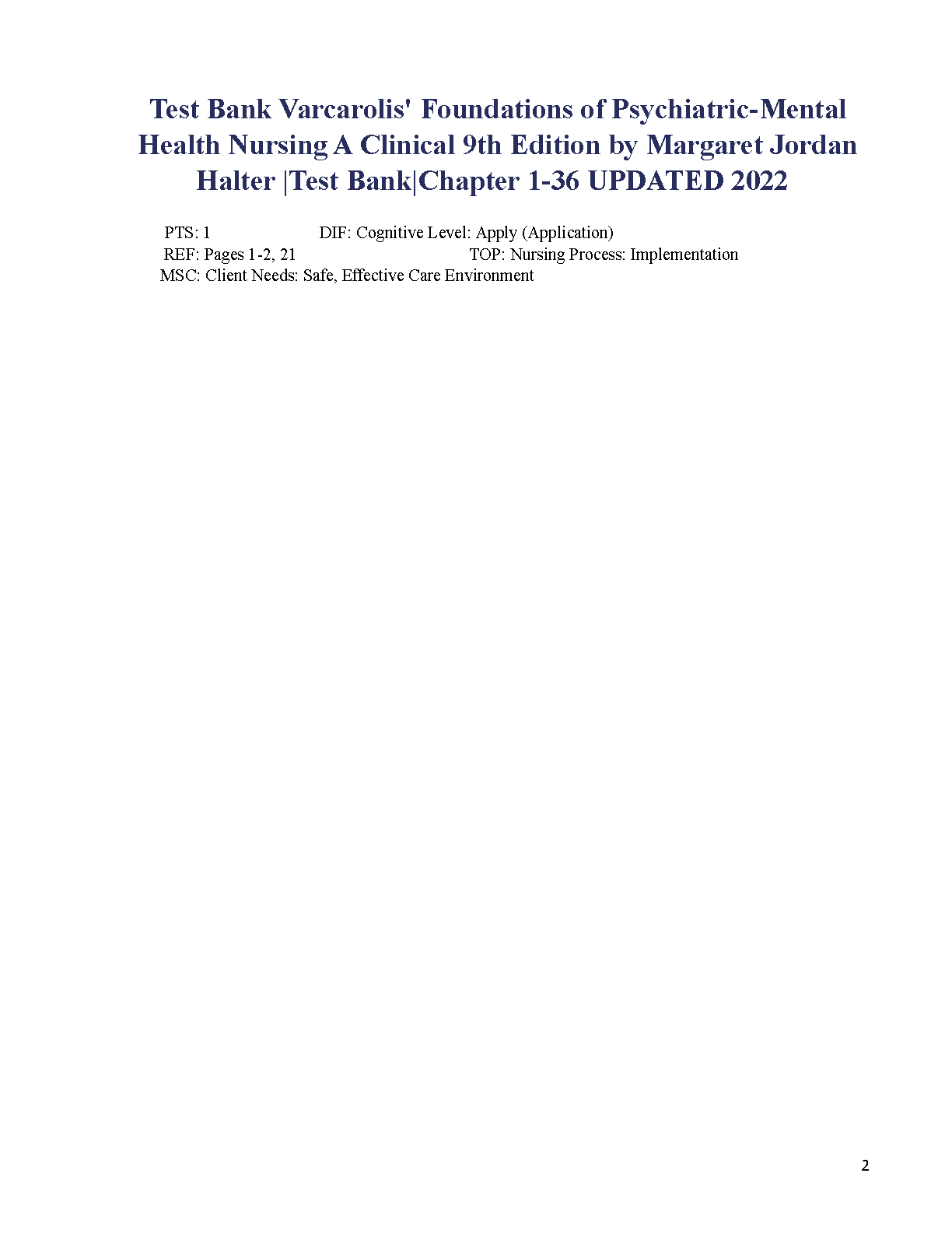 Test Bank for Varcarolis' Foundations of Psychiatric-Mental Health Nursing: A Clinical Approach, 8th Edition by Elizabeth M. Varcarolis and Margaret Jordan Halter (Chapters 1-36)