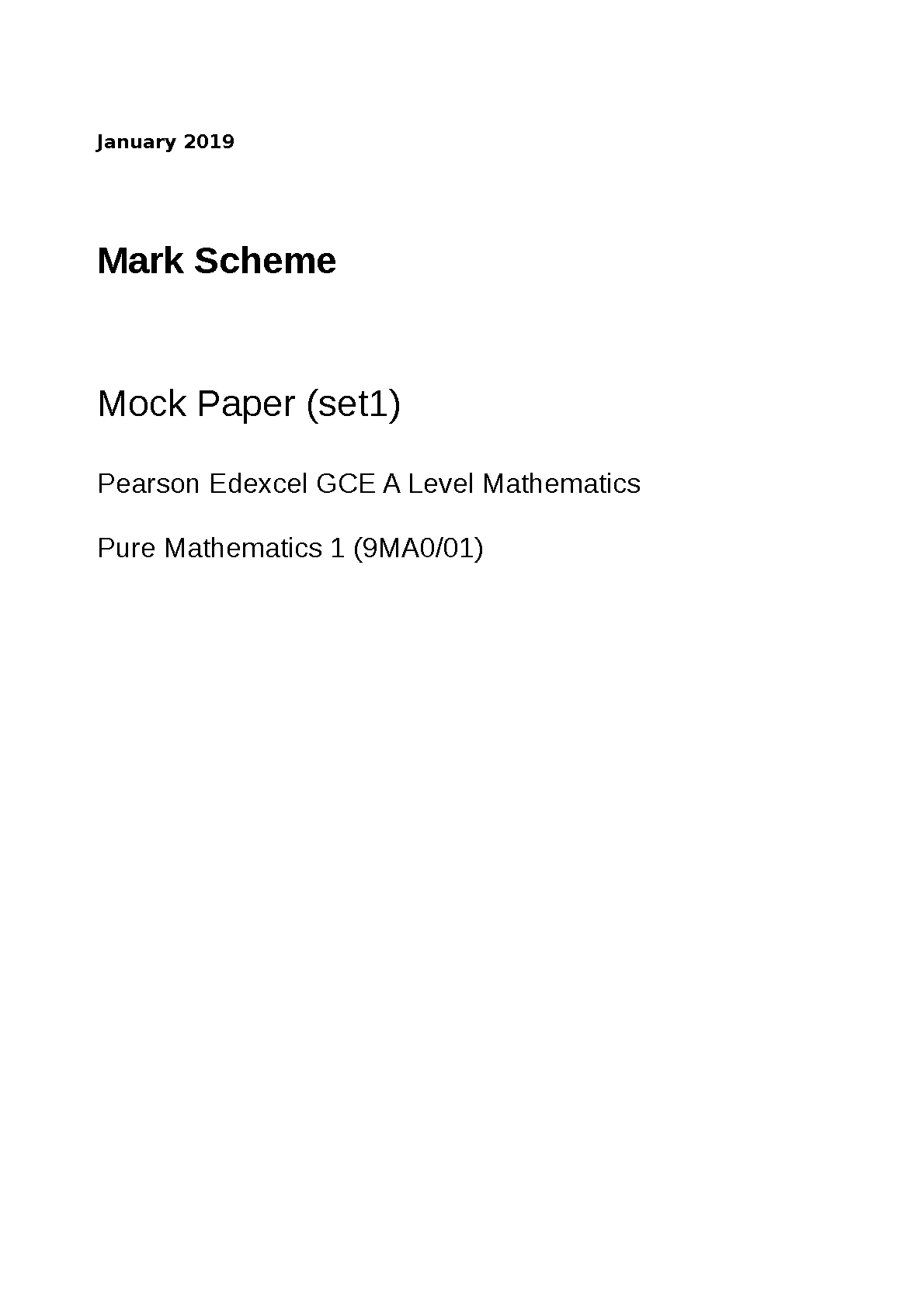 2025/2026 Edexcel A Level Maths: Pure Mathematics 1 (9MA0/01) Jan 2019 Mock Paper (Set 1) Mark Scheme | Ultimate Guide to Pass First Time