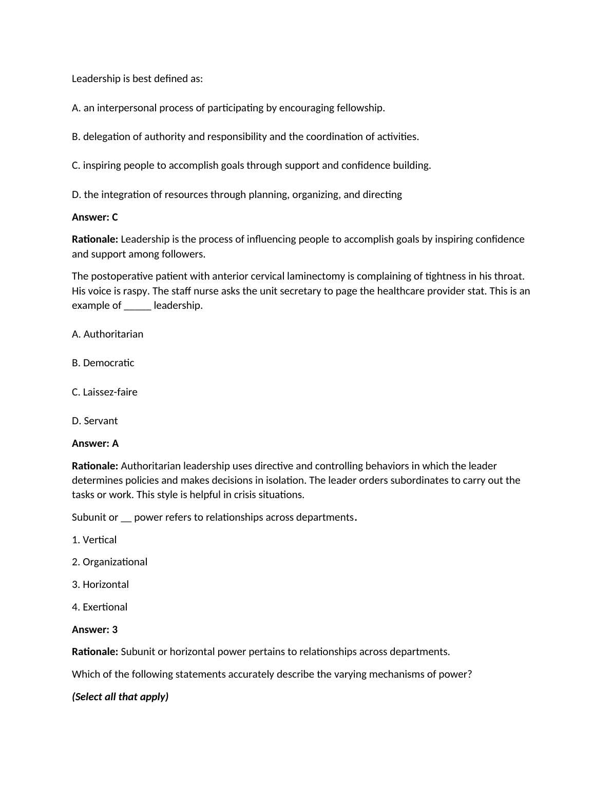 Master NCLEX Leadership & Management: 2025/2026 Q&A Test Bank with Rationales for First-Attempt Success