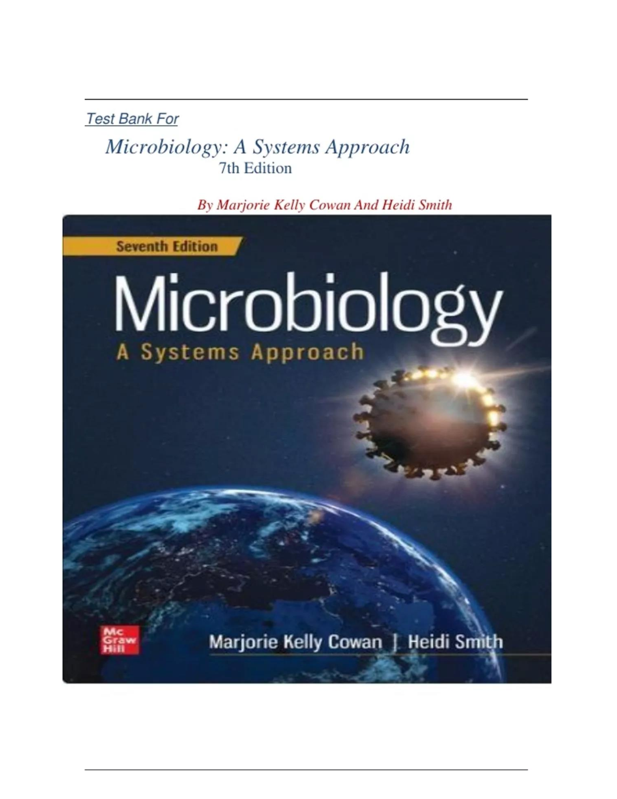 Test Bank for Microbiology: A Systems Approach, 7th Edition by Marjorie Kelly Cowan, Heidi Smith