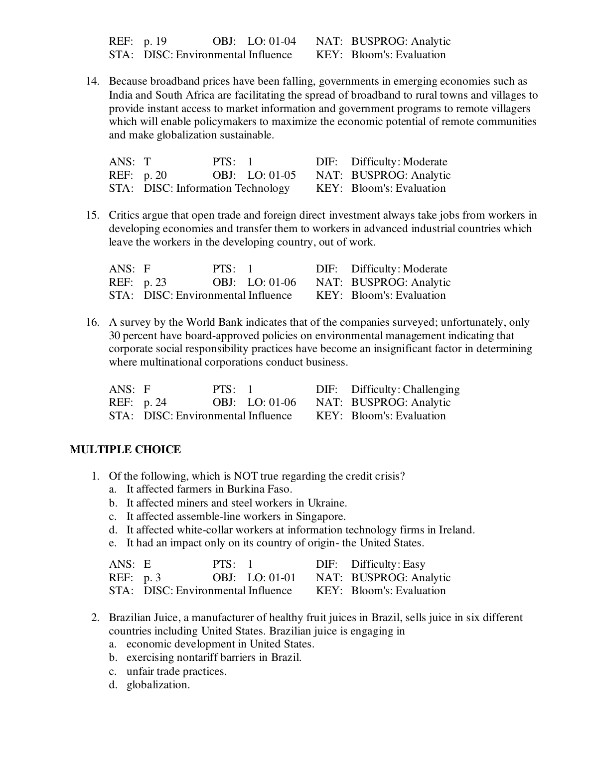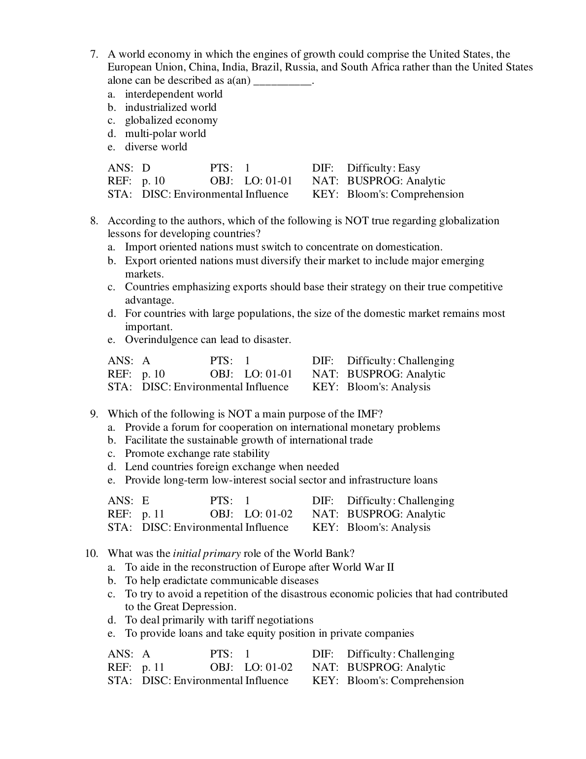 Test Bank for Introduction to Global Business: Understanding the International Environment and Global Business Functions, 2nd Edition by Julian E. Gaspar, James W. Kolari, Leonard Bierman, L. Murphy Smith, Richard T. Hise, Antonio Arreola-Risa