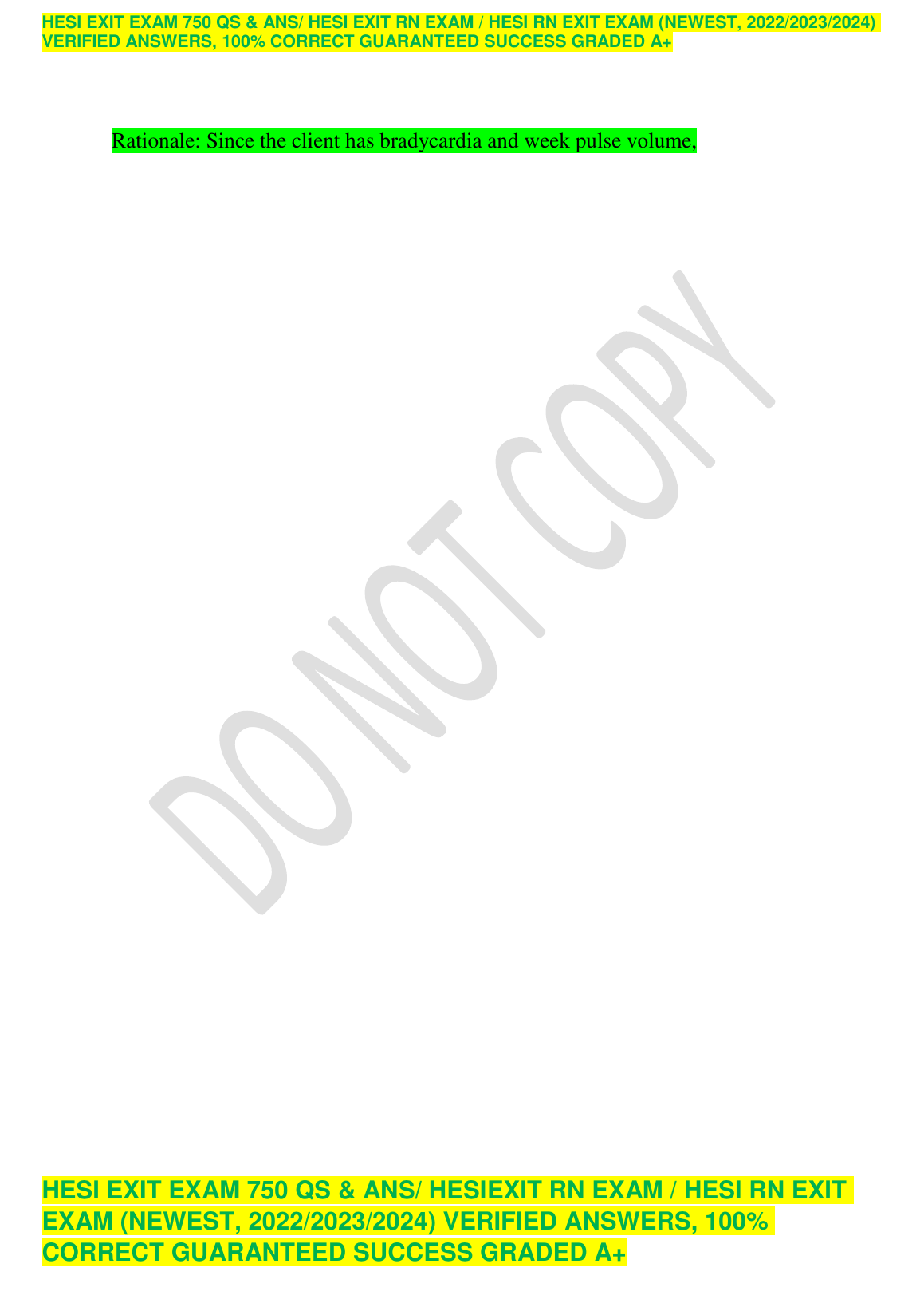 HESI Exit RN Exam Test Bank 2025/2026: Master 750 Q&A with In-Depth Rationales for First-Attempt Success