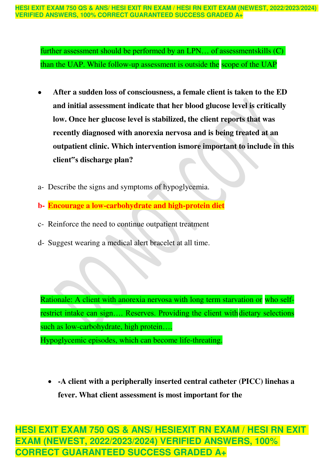 Ace your HESI RN Exit Exam on the first try with our ultimate 2025/2026 test bank. This comprehensive resource features 750 meticulously verified questions, each paired with a detailed rationale to deepen your understanding of core nursing concepts. This isn't just a list of answers; it's a complete study tool designed to help you master the material, identify weak spots, and walk into your exam with confidence. Get the A+ grade you deserve and take the final step toward your nursing career without the stress of resits. Download now for immediate access to the best preparation material available.