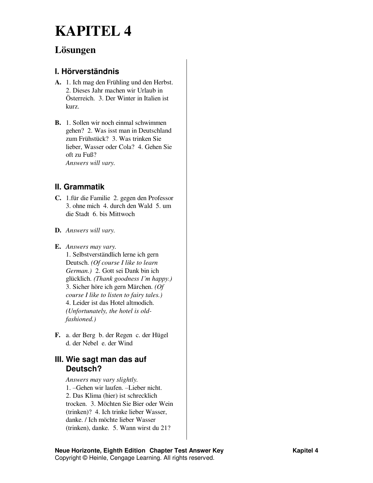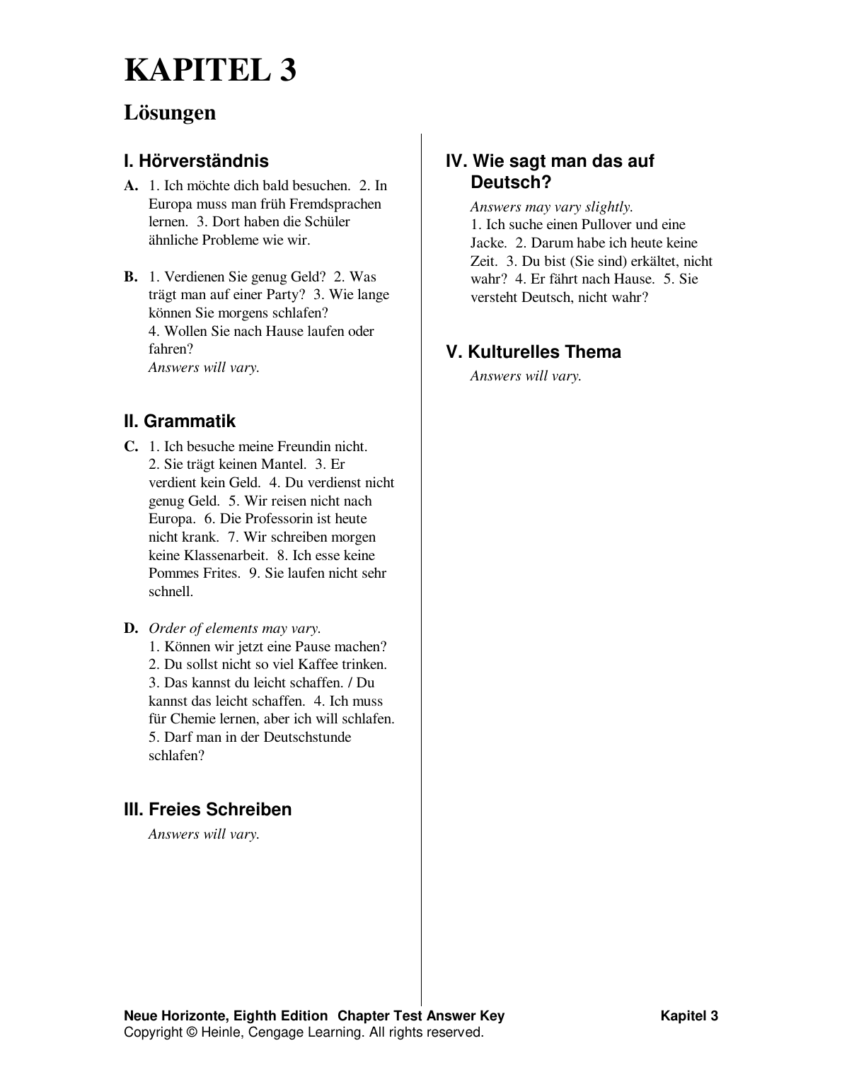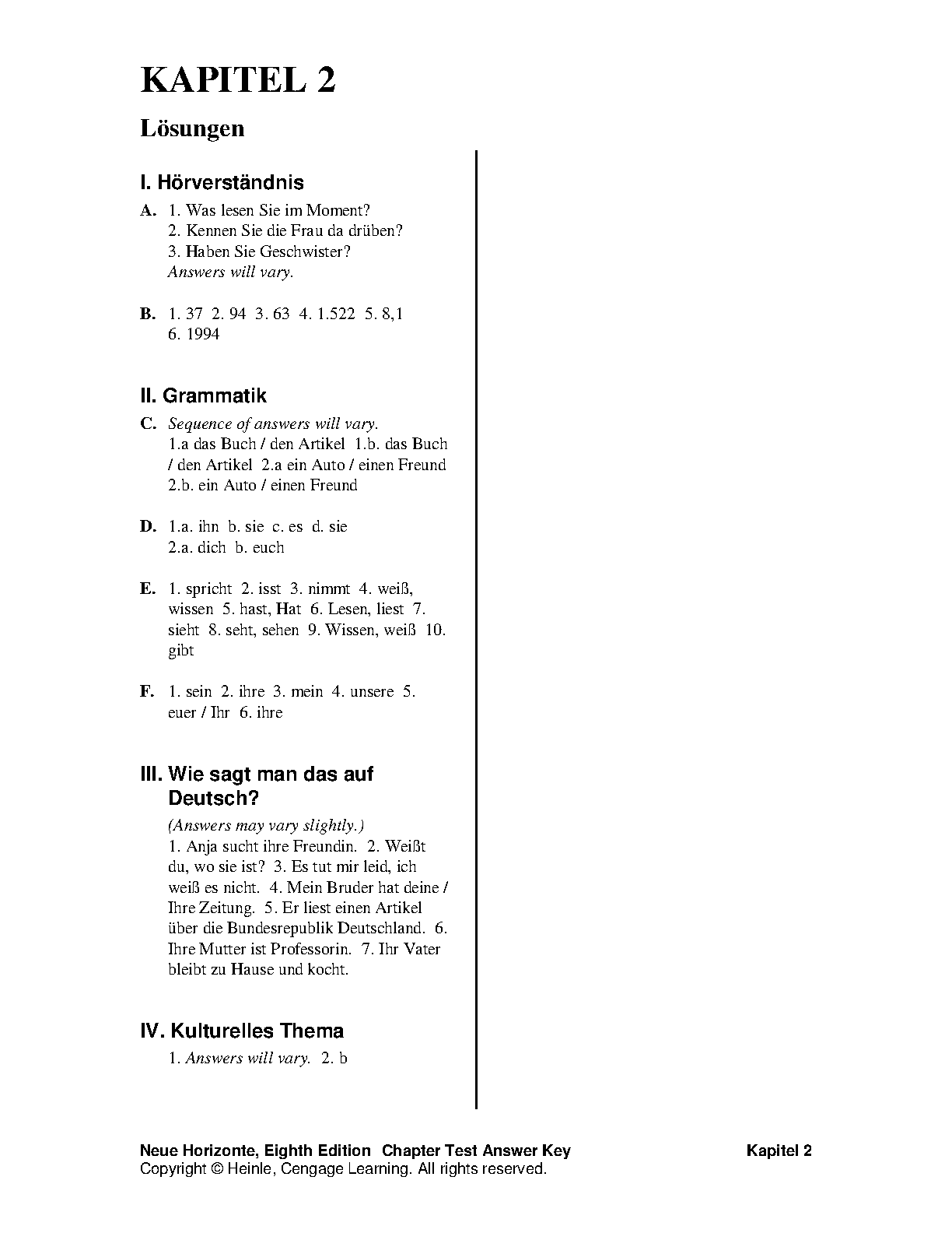 Test Bank for Neue Horizonte, 8th Edition by David B. Dollenmayer, Thomas S. Hansen, and Renate H. Dollenmayer - Chapter Test Answer Key