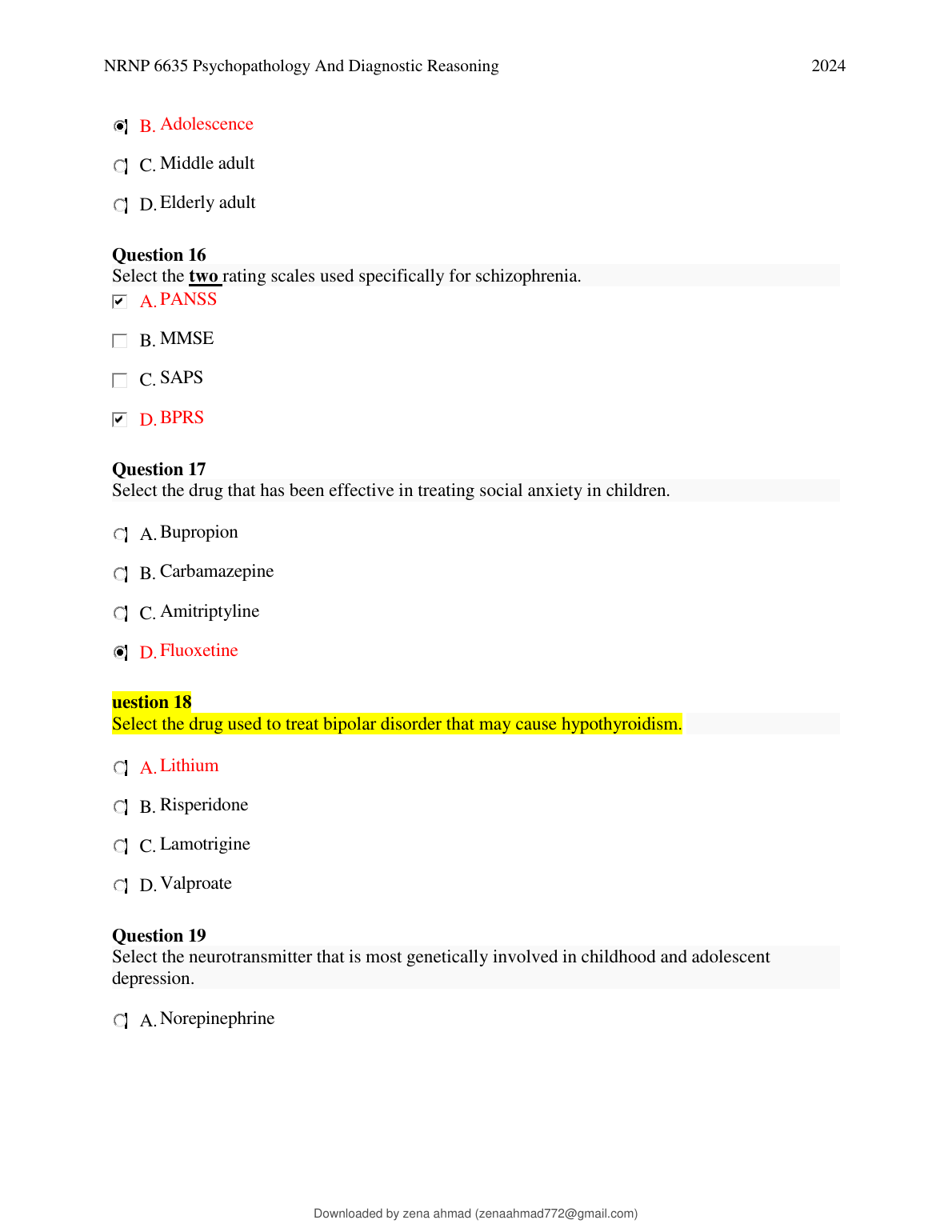 NRNP 6635 Week 6 Midterm Exam Test Bank 2025/2026 | Psychopathology & Diagnostic Reasoning | Verified Questions & Answers for an A+ Grade
