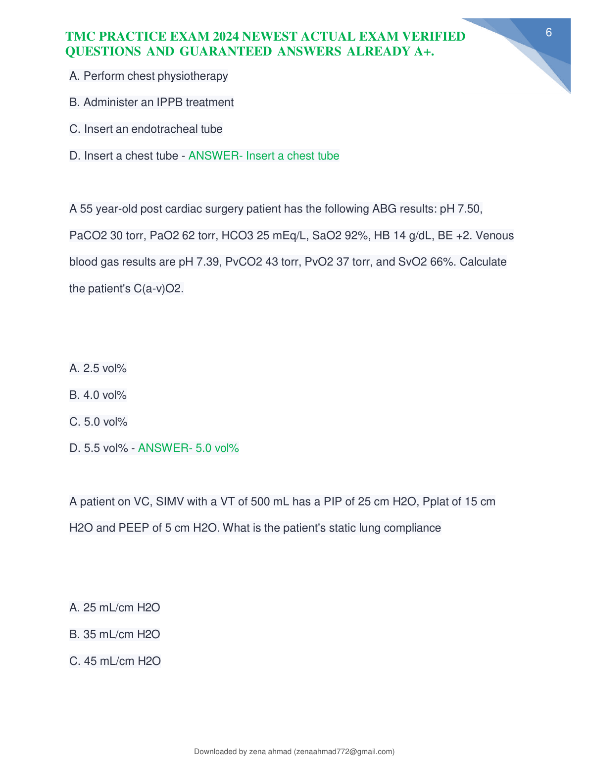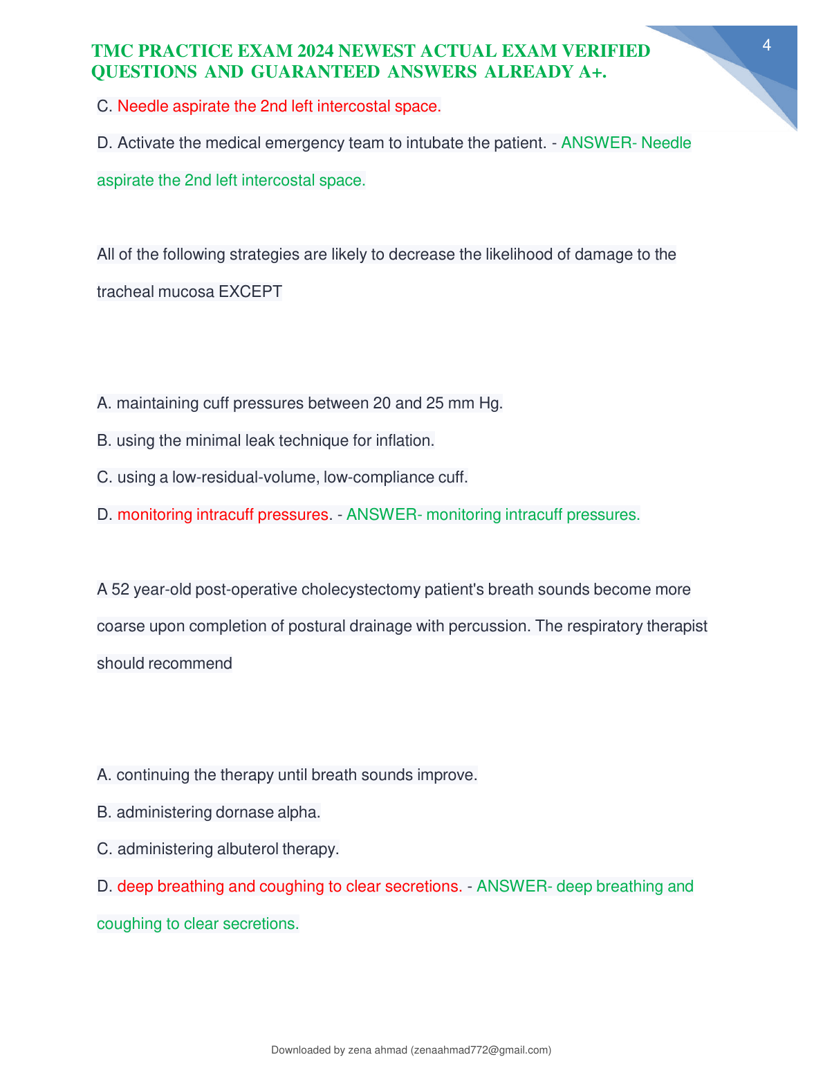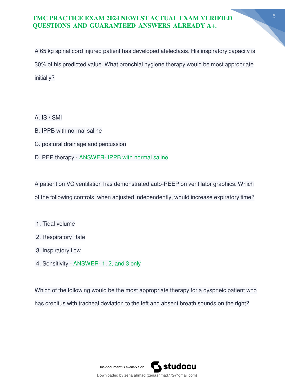 TMC Practice Exam 2024: Latest Edition with Verified Questions & Answers for Respiratory Therapists
