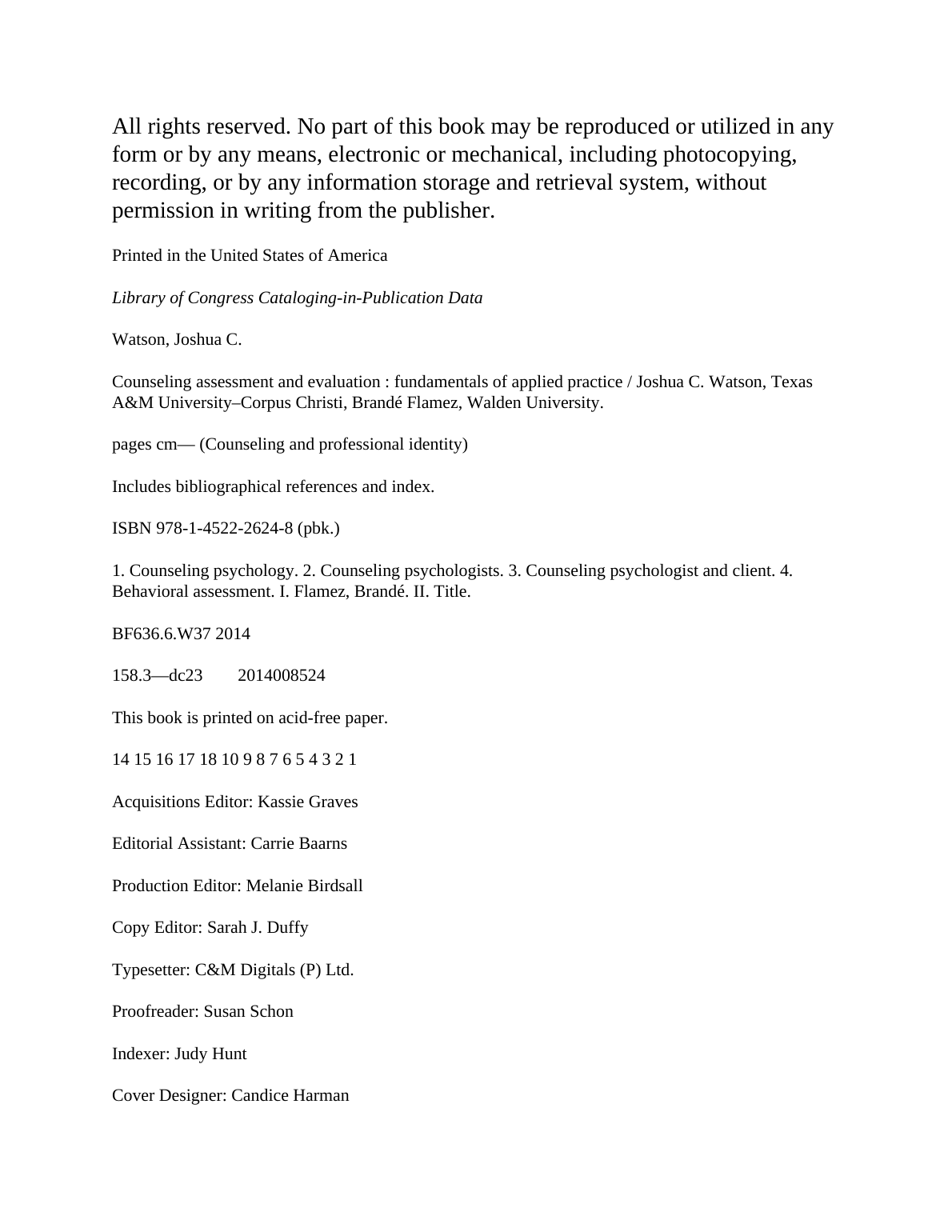 Test Bank for Counseling Assessment and Evaluation: Fundamentals of Applied Practice, 1st Edition by Joshua C. Watson, Brandé Flamez
