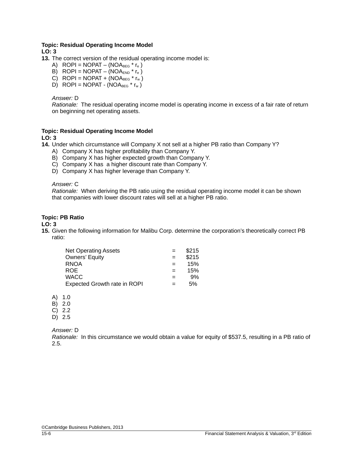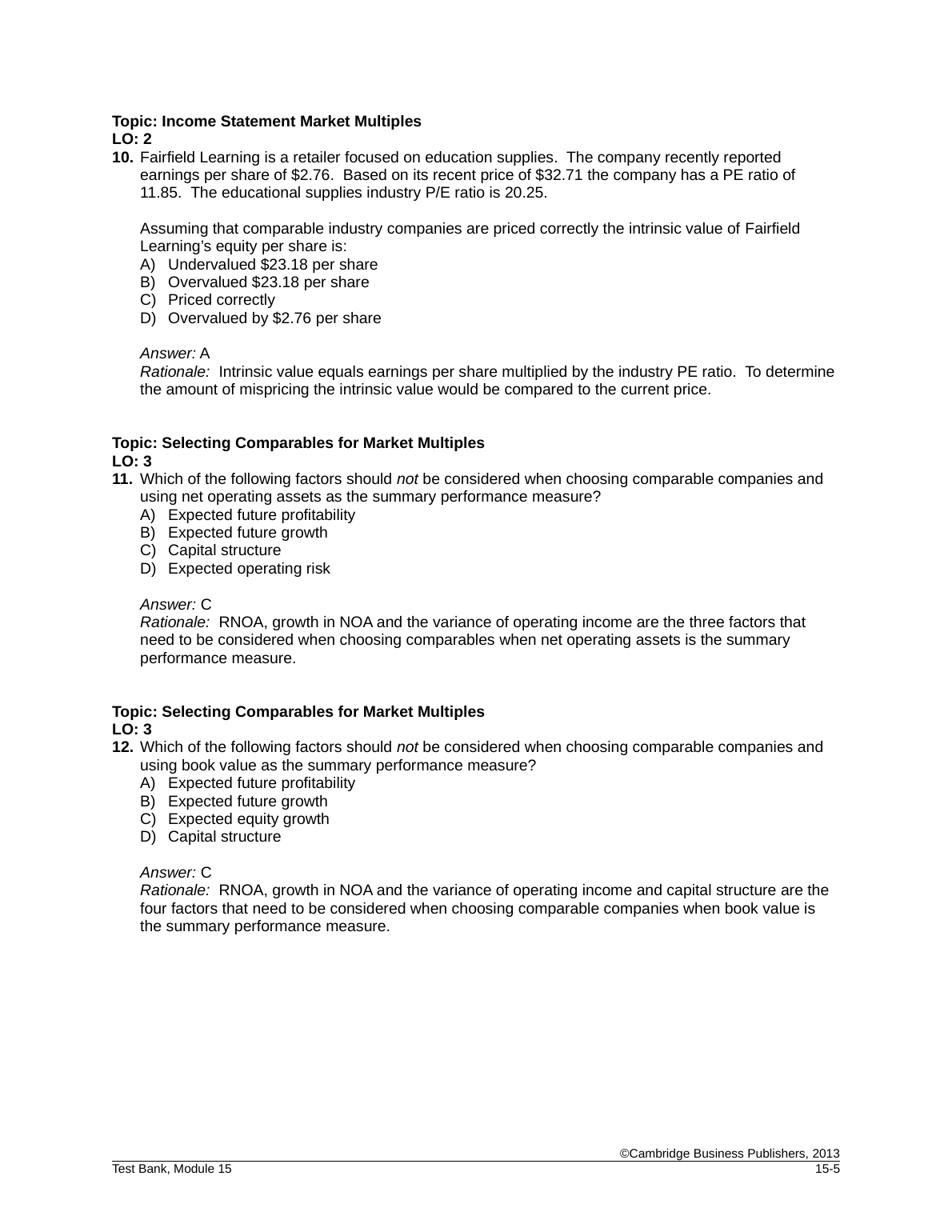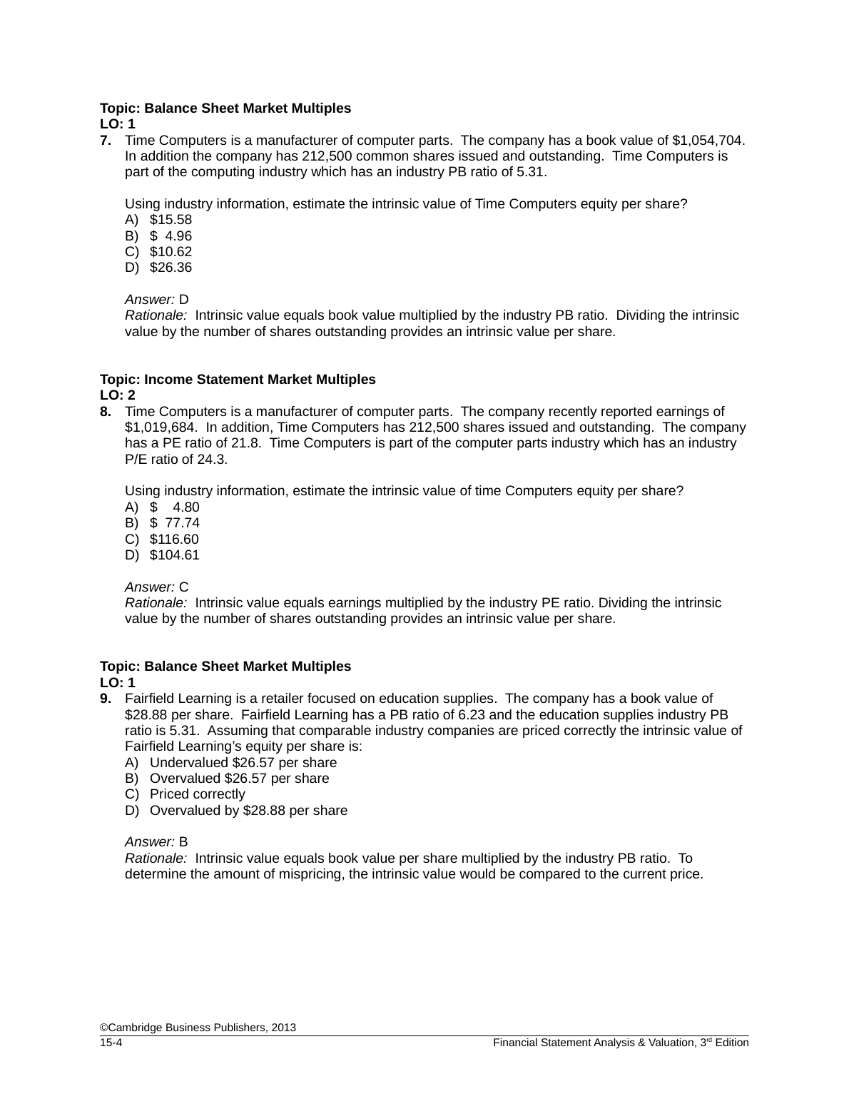 Test Bank For Financial Statement Analysis & Valuation, 3rd Edition (Module 15 Market-Based Valuation)