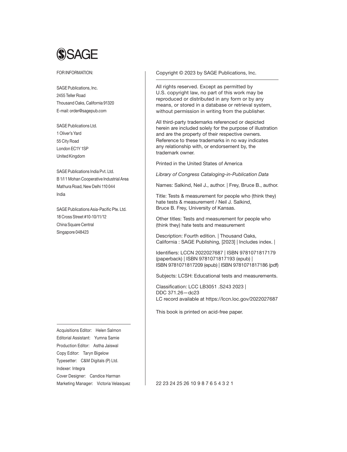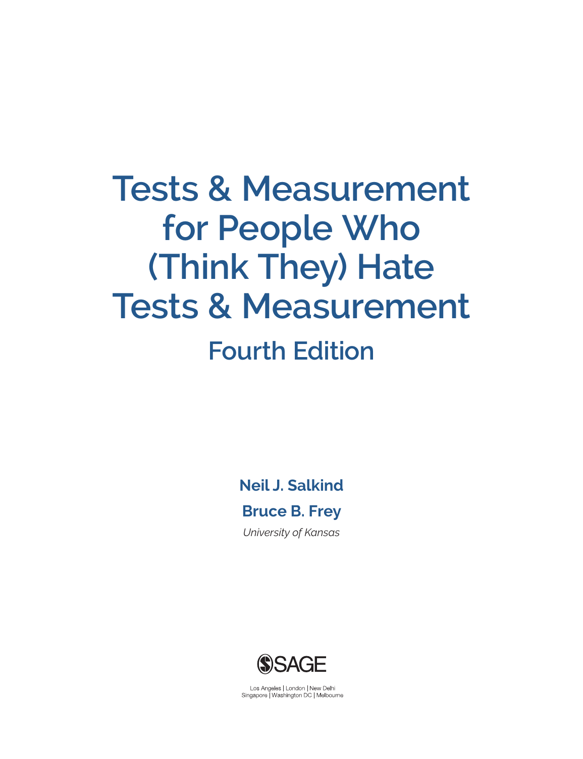 Test Bank for Tests & Measurement for People Who (Think They) Hate Tests & Measurement, 4th Edition by Neil J. Salkind, Bruce B. Frey