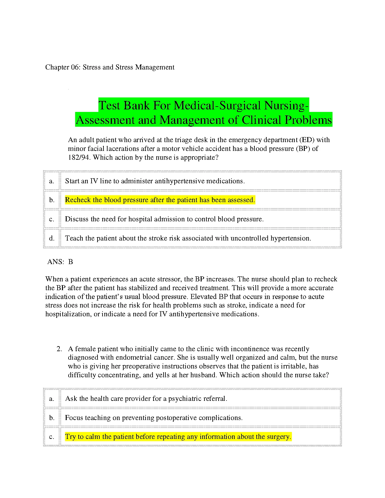 Test Bank For Medical-Surgical Nursing Assessment and Management of Clinical Problems