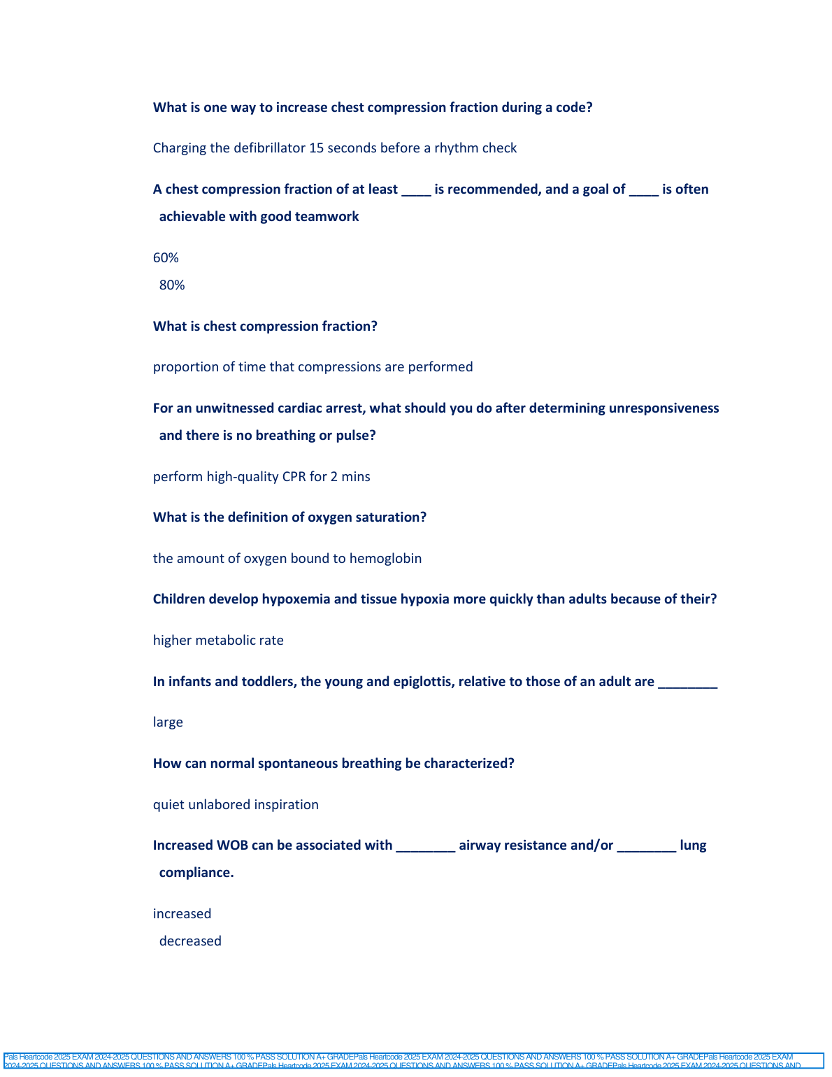 Ace your PALS Heartcode certification with our comprehensive 2025 Test Bank, fully updated for the 2024-2025 exams. This essential study guide, based on the latest American Heart Association (AHA) guidelines, provides a complete set of verified questions and detailed answers to ensure you master the material. Cover crucial topics such as pediatric assessment, respiratory emergencies, cardiac arrest management, and more. This solution manual is designed to help you pass your PALS exam on the first attempt with an A+ grade, saving you time and avoiding costly resits. Get instant access to the exact questions you'll see on the test and walk into your exam with confidence.