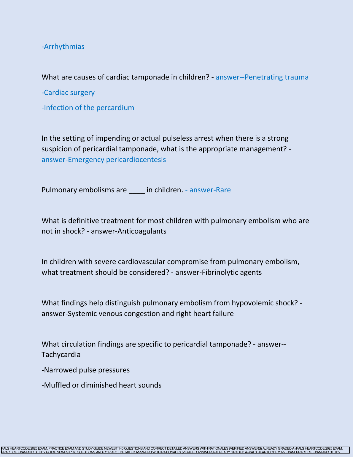 PALS Heartcode 2025 (AHA) Exam Bank: 140 Verified Questions & Answers to Ace Your Test and Avoid Resits (Graded A+)