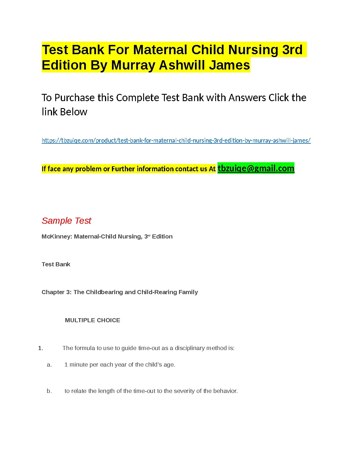 Test Bank For Maternal Child Nursing 3rd Edition By Murray Ashwill James