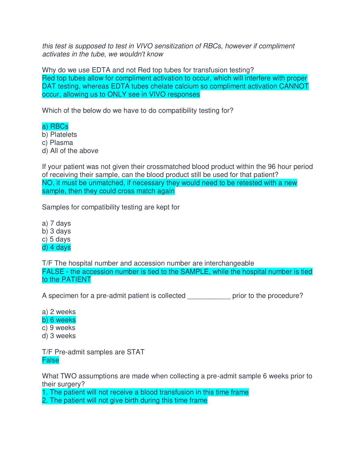TRANS 208 Immunohematology Test Bank: Test 1 with Correct Answers for 2025/2026 Exam Success