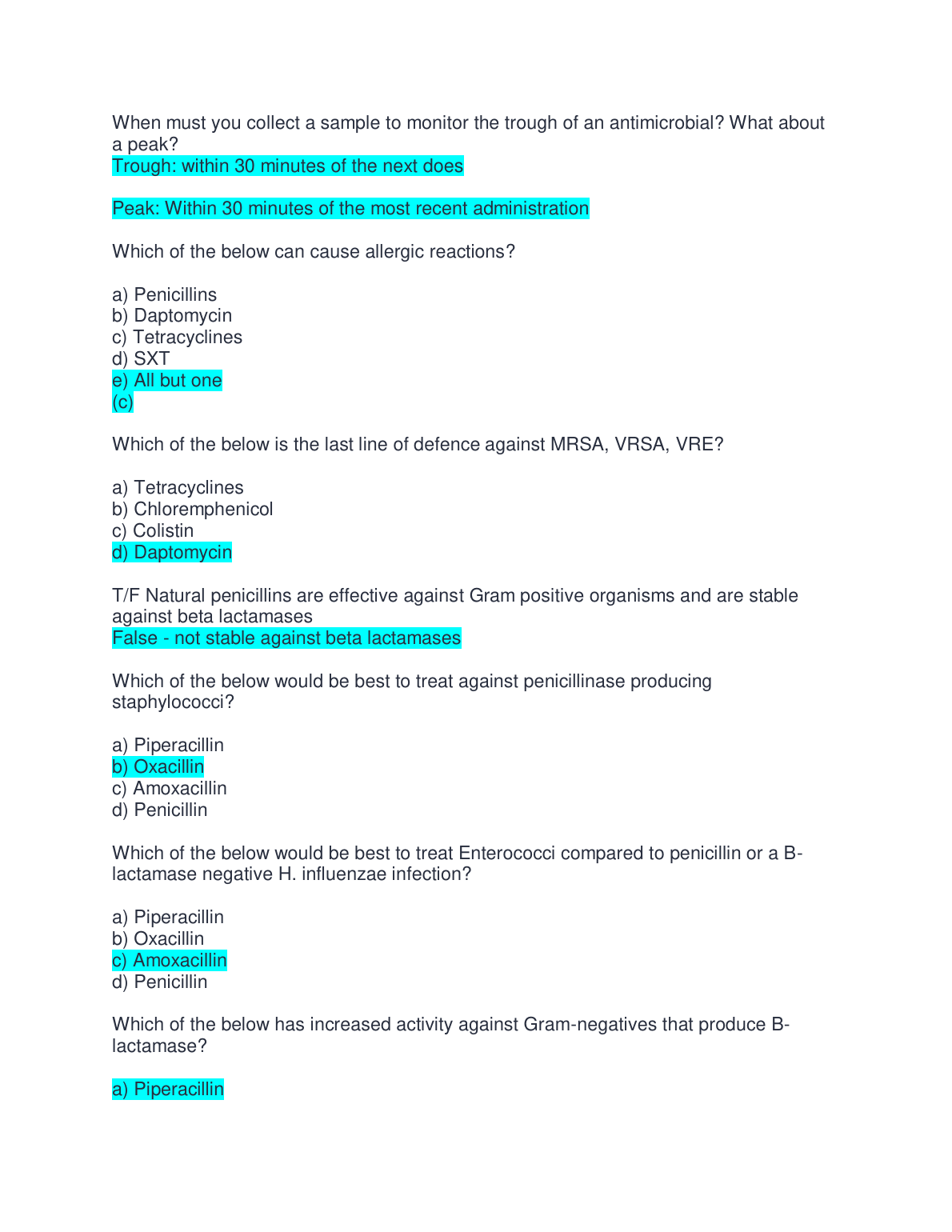 MICR 208 Test 1 Test Bank: Master Microbiology with Verified Questions and Answers on Antimicrobials