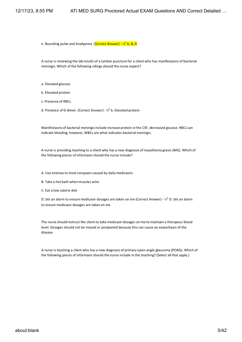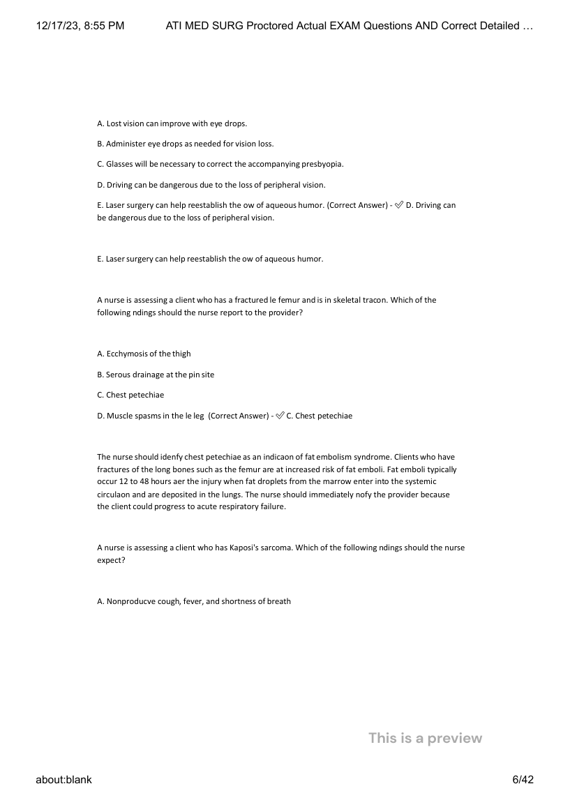 Master the ATI Med Surg Proctored Exam with our comprehensive and up-to-date 2024-2025 test bank. This essential study guide features a complete collection of actual exam questions, each accompanied by a 100% correct, verified answer and a detailed rationale. Designed for nursing students aiming for an A+ grade, this resource will help you grasp complex Medical-Surgical nursing concepts, boost your confidence, and ensure you pass your proctored exam on the very first attempt. Stop stressing and start studying smart with the ultimate prep tool for your ATI Med Surg exam.