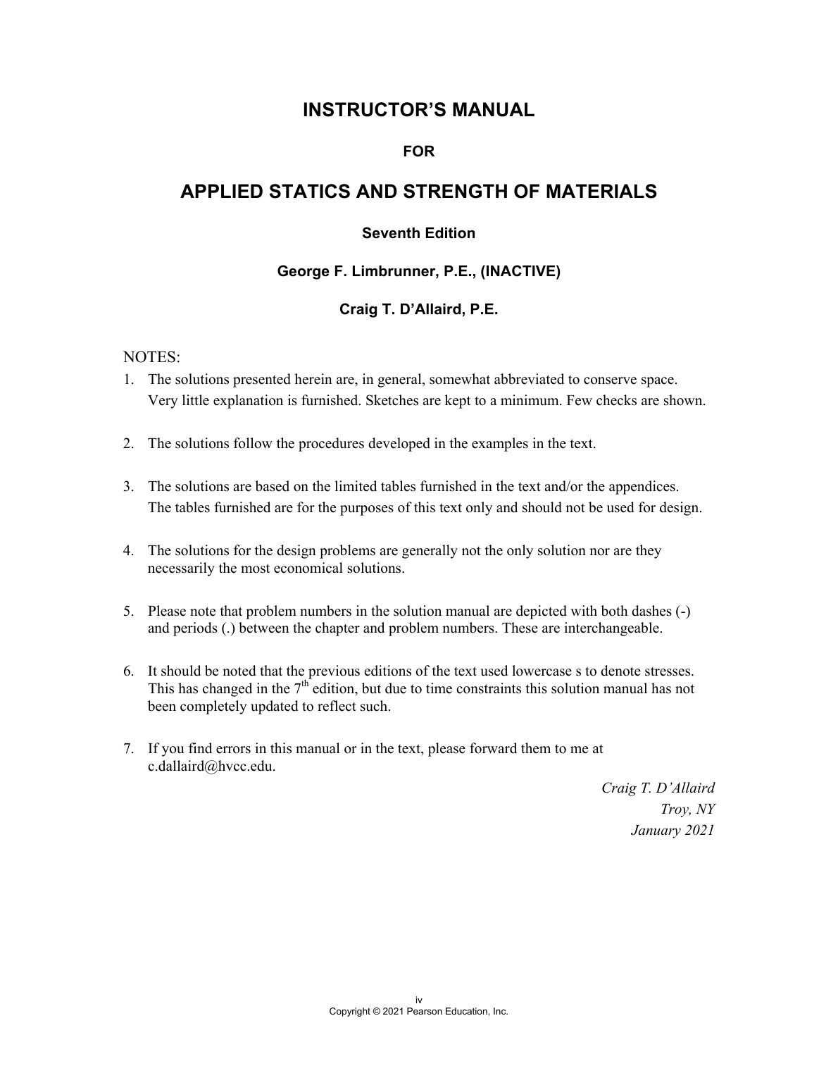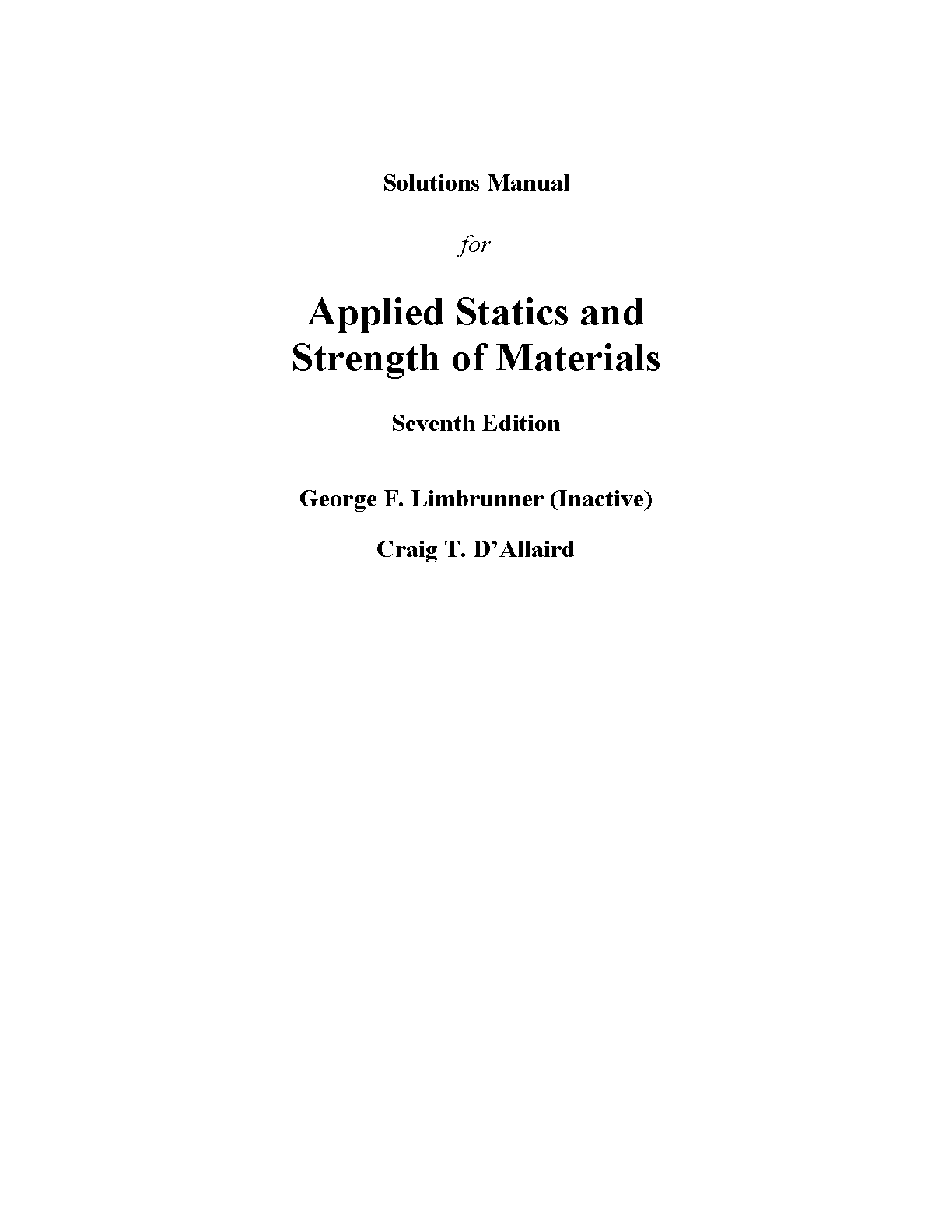 Solutions Manual for Applied Statics and Strength of Materials, 7th Edition by George F. Limbrunner and Craig T. D'Allaird