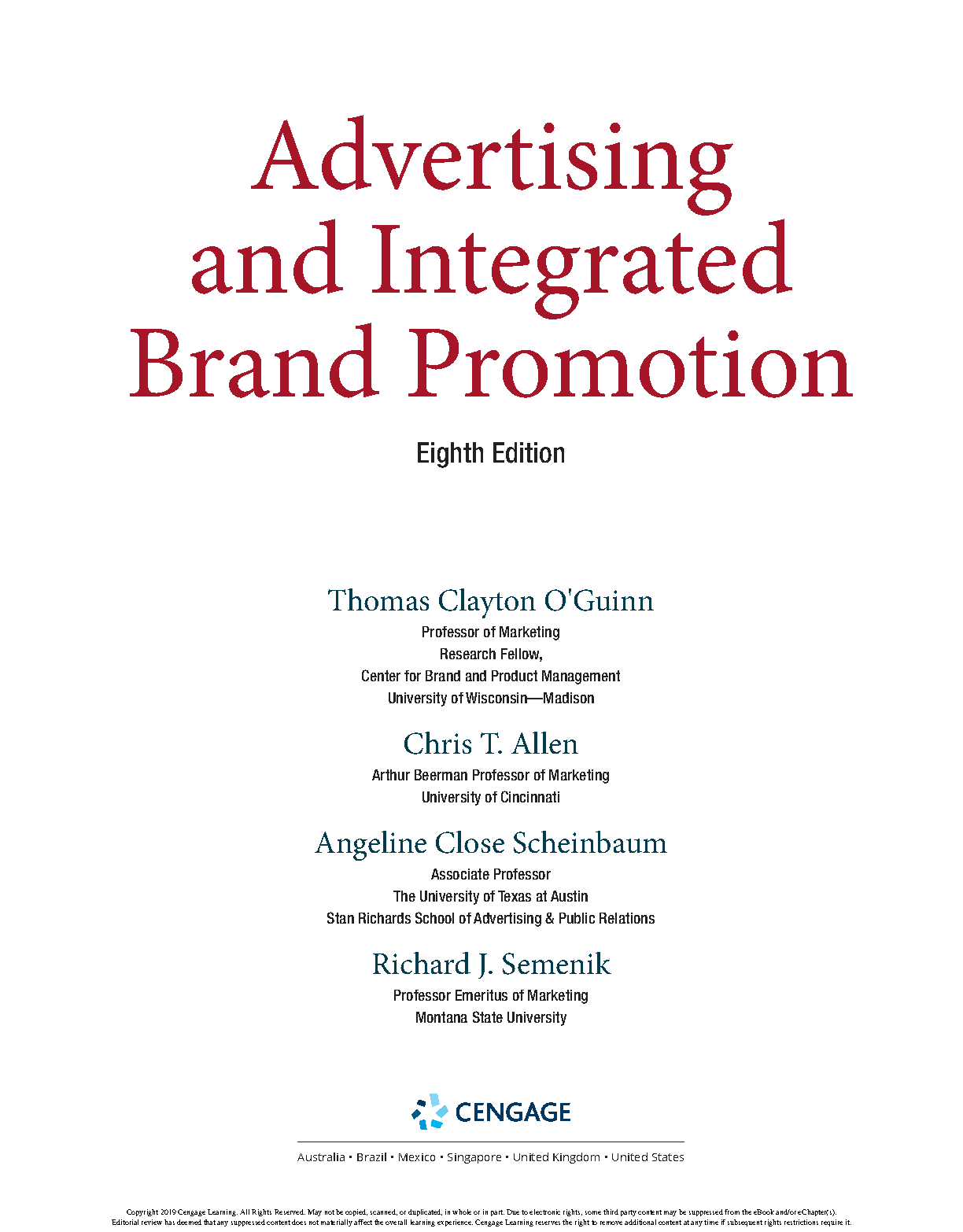 Test Bank for Advertising and Integrated Brand Promotion, 8th Edition by Thomas C. O'Guinn, Chris T. Allen, Angeline G. Close Scheinbaum, Richard J. Semenik