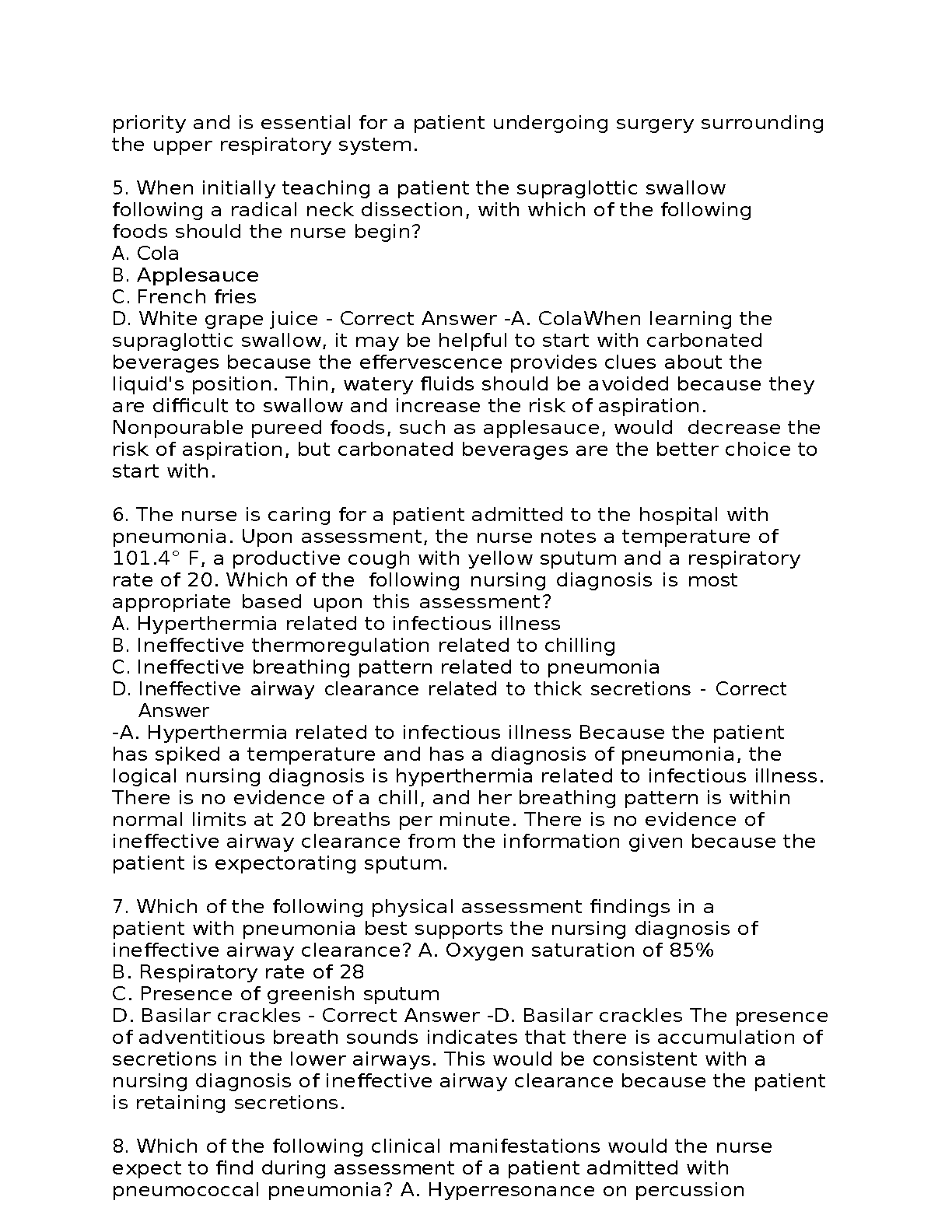 Ace your Med Surg 302 final exam with our comprehensive test bank for the 2024-2025 academic year. This essential study guide features a full collection of exam-style questions, each with a verified correct answer and a detailed rationale to deepen your understanding. Covering crucial nursing topics like patient assessment for hypoxemia, post-operative care, and managing complex conditions like COPD, this resource is your key to success. Prepare effectively, study smarter, and pass your medical-surgical nursing exam with confidence on your first try.