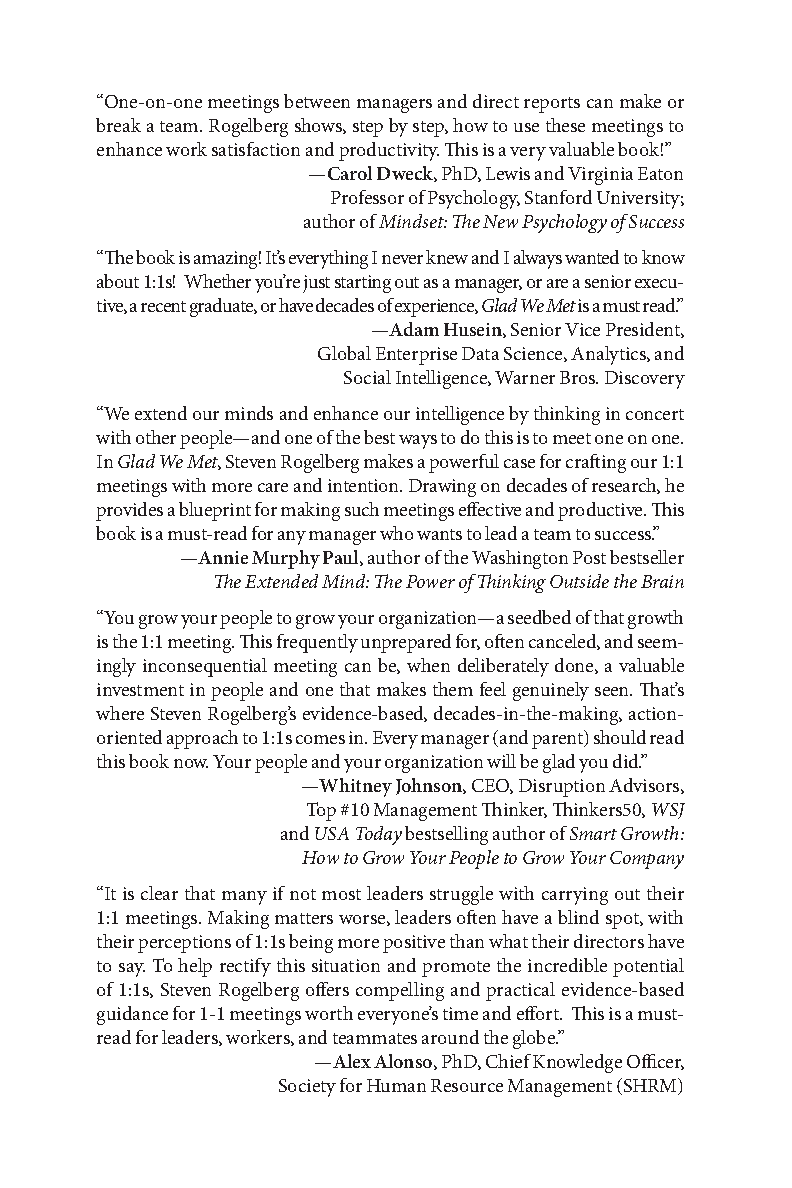 Unlock the true potential of your team with 'Glad We Met,' the definitive guide to mastering the art and science of 1:1 meetings. Authored by renowned organizational psychologist Steven G. Rogelberg, this resource provides an evidence-based framework to transform one-on-ones from dreaded obligations into powerful catalysts for growth and success. Updated for the 2025/2026 professional landscape, this guide offers actionable strategies to enhance communication, drive performance, and build stronger relationships. This is the ultimate tool for managers and leaders aiming to elevate their skills and achieve outstanding results on the first attempt, fostering a productive and engaged workforce.