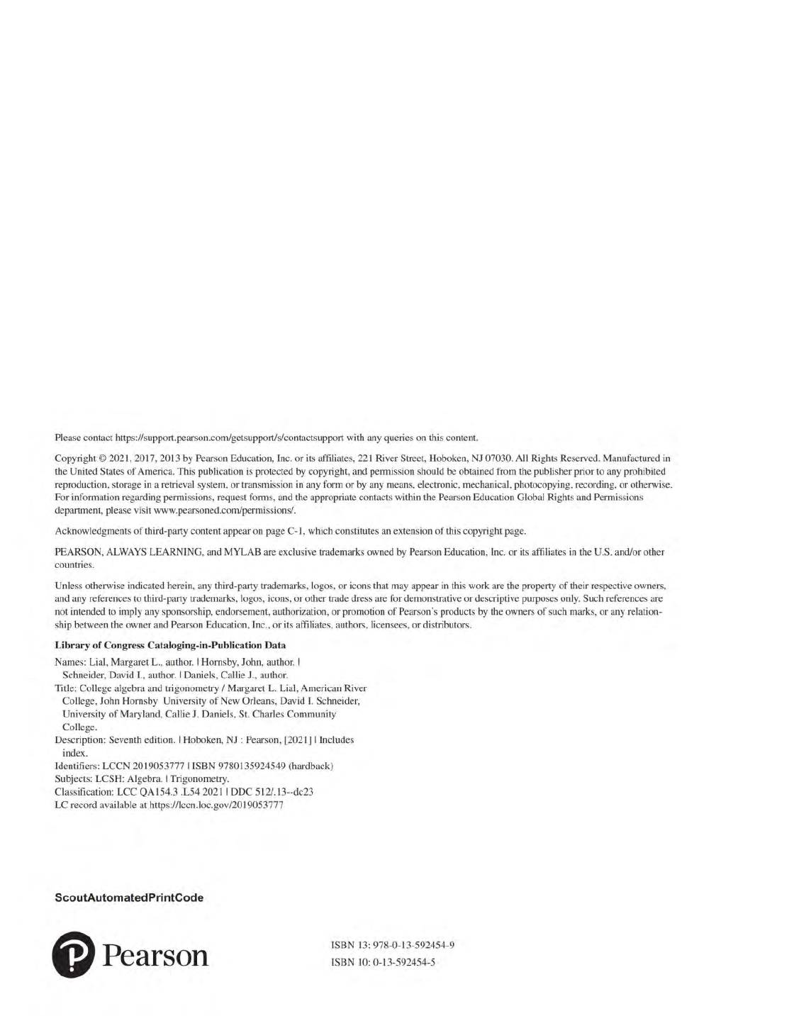 Test Bank for College Algebra and Trigonometry, 7th Edition by Margaret L. Lial, John Hornsby, David I. Schneider, Callie Daniels