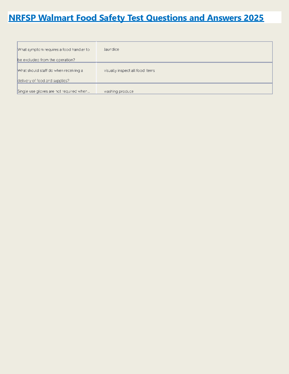 NRFSP Walmart Food Safety Test Bank 2025: Complete Questions and Answers Study Guide