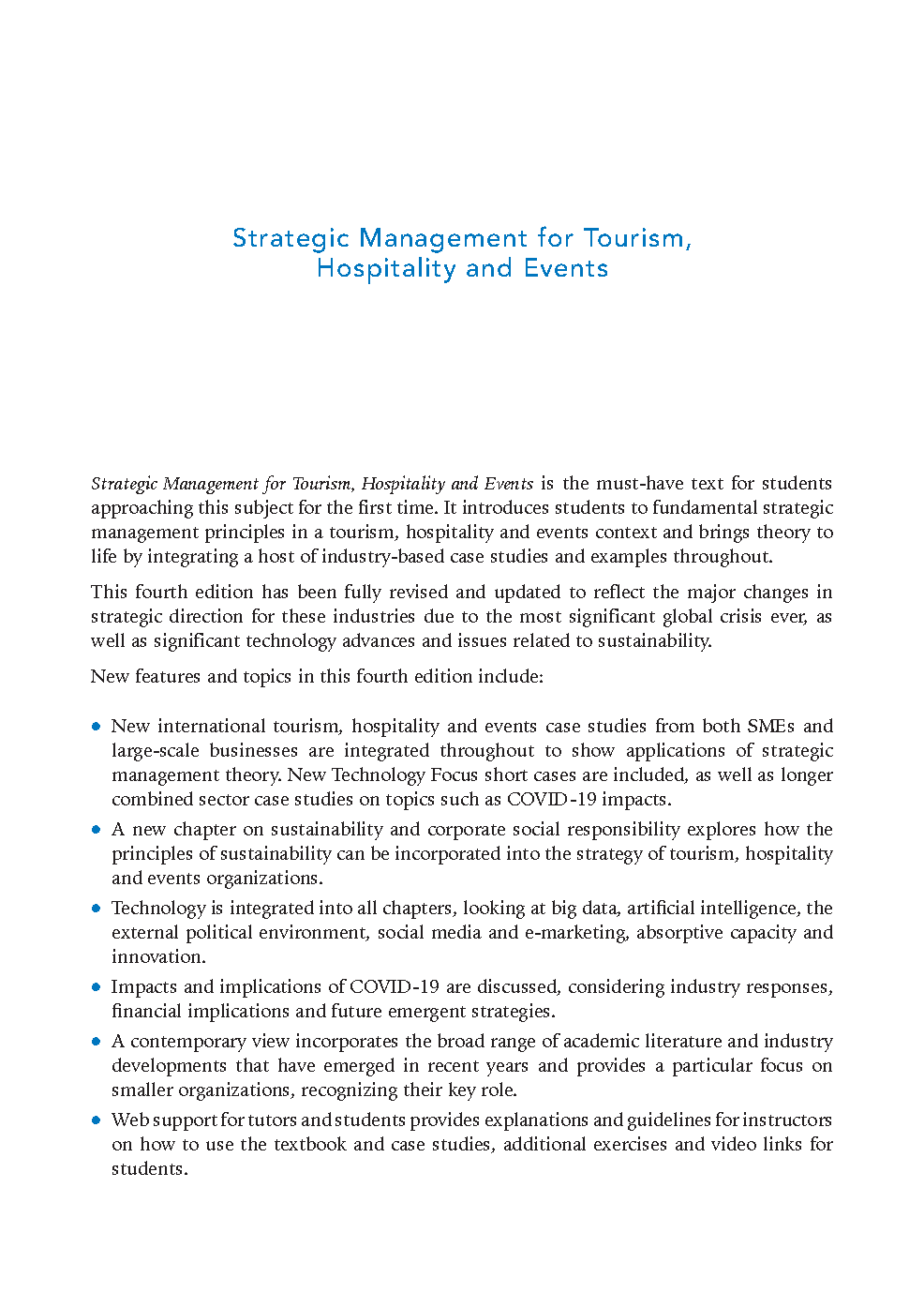 Test Bank for Strategic Management for Tourism, Hospitality and Events, 4th Edition by Nigel G. Evans