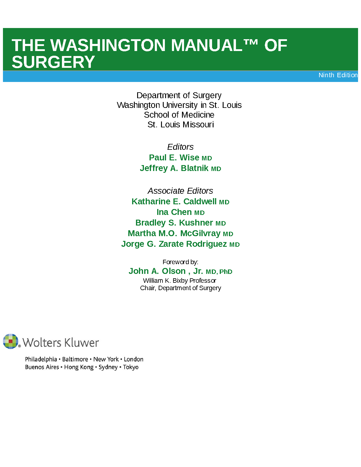The Washington Manual of Surgery, 9th Edition by Paul E. Wise and Jeffrey A. Blatnik | Your Ultimate 2025/2026 Study Companion for First-Attempt Exam Success