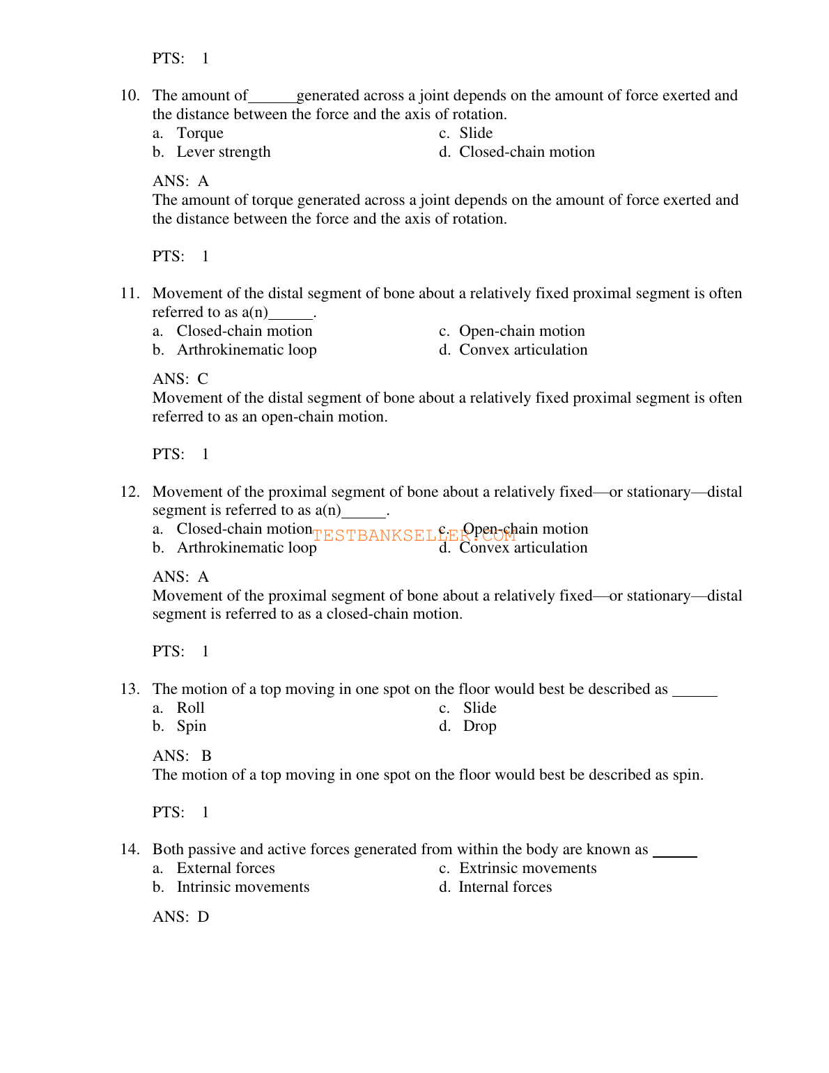 Test Bank for Essentials of Kinesiology for the Physical Therapist Assistant, 3rd Edition by Paul Jackson Mansfield and Donald A. Neumann