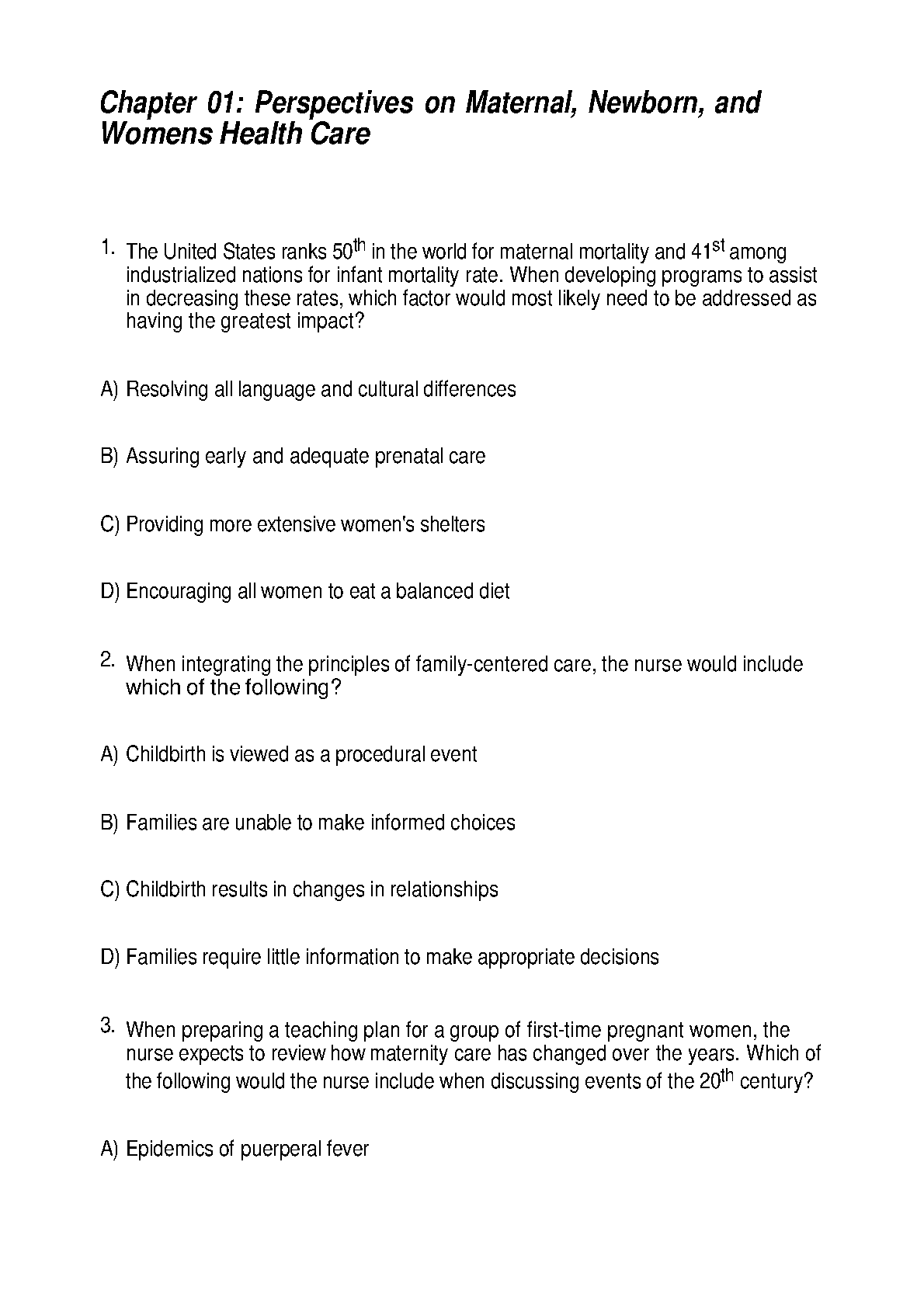 Master your nursing course with the official Test Bank for 'Essentials of Maternity, Newborn, and Women's Health Nursing,' 5th Edition. Authored by Ricci, Kyle, and Carman, this comprehensive resource provides a vast collection of exam-style questions and detailed answers, organized by chapter. It's the perfect study companion to reinforce key concepts, test your knowledge, and prepare effectively for exams, ensuring you excel in your understanding of maternal and women's health nursing.