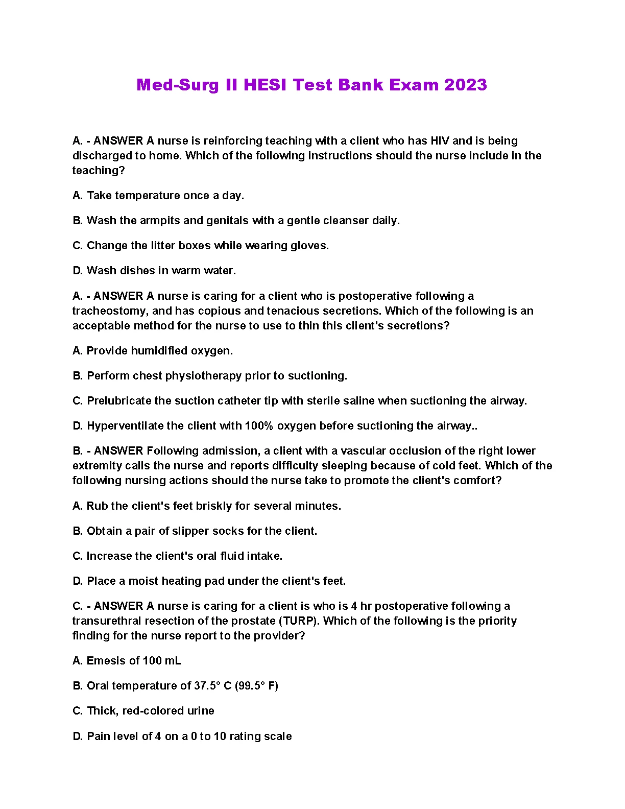 TEST BANK FOR HESI Med-Surg II Exam 2023