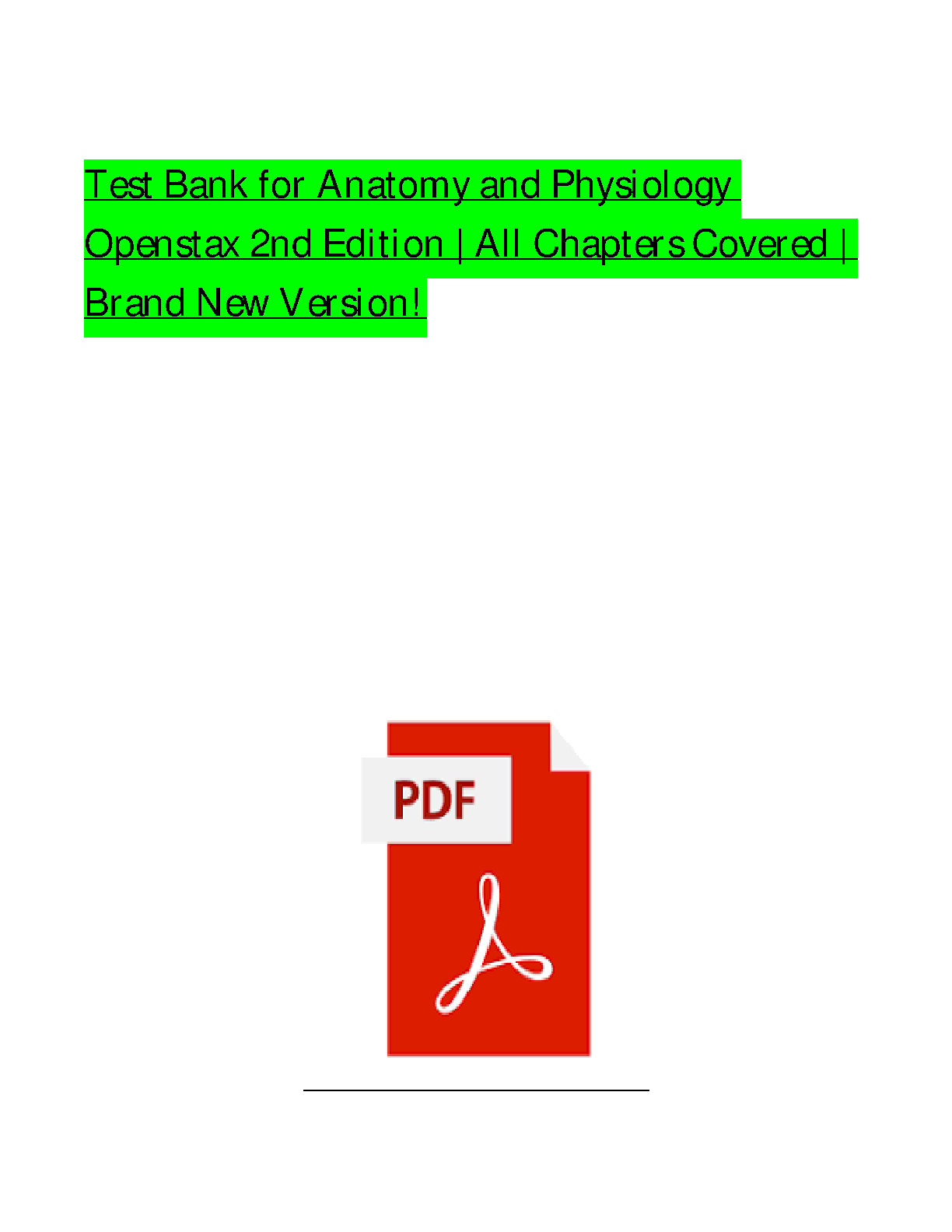 Get instant access to the complete Test Bank for Anatomy and Physiology, 2nd Edition by OpenStax. Authored by J. Gordon Betts, Kelly A. Young, James A. Wise, and others, this comprehensive resource is the ultimate tool for exam success. This brand-new version includes a vast collection of questions covering every chapter, including multiple-choice, true/false, and short-answer formats with detailed rationales. Master complex concepts, practice with exam-style questions, and confidently prepare to ace your A&P course.