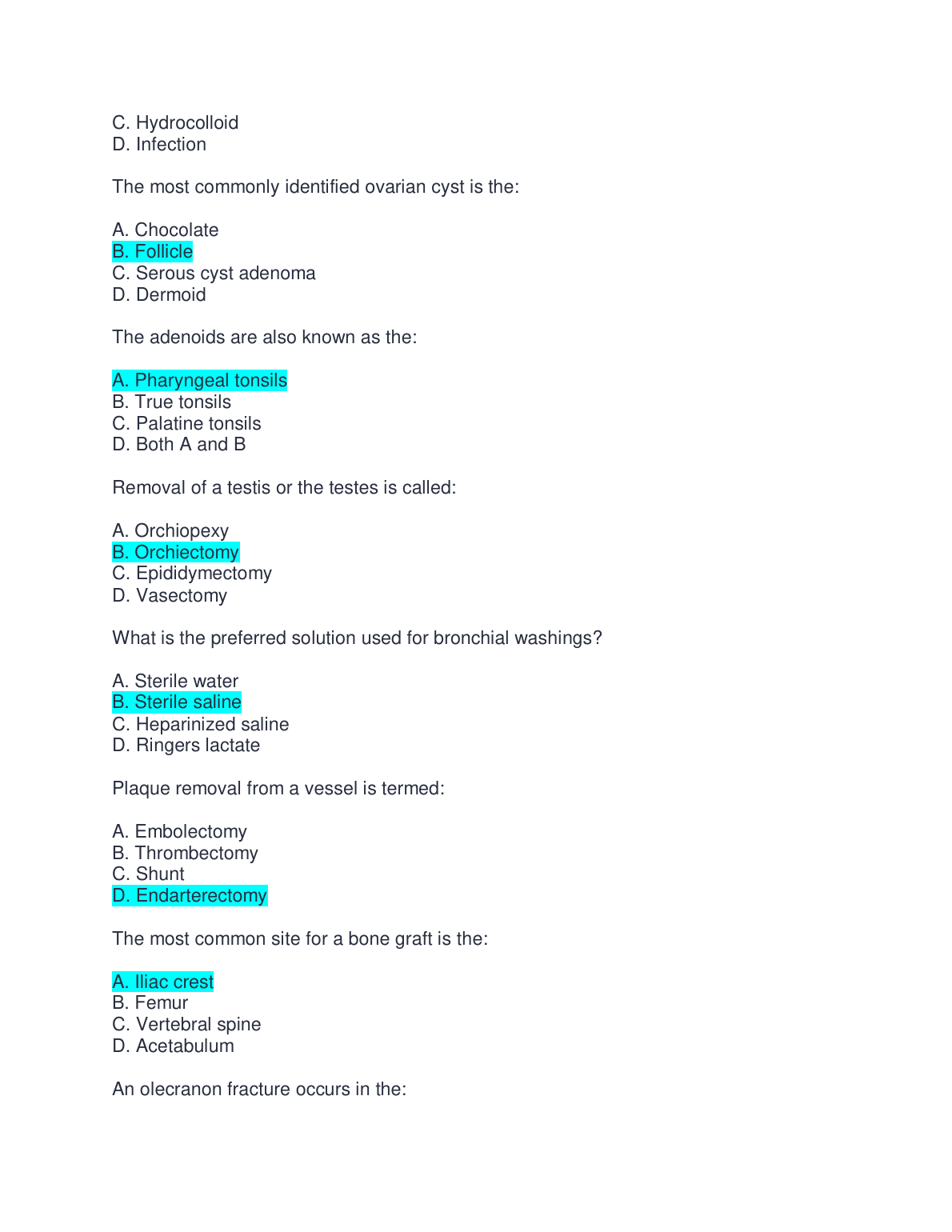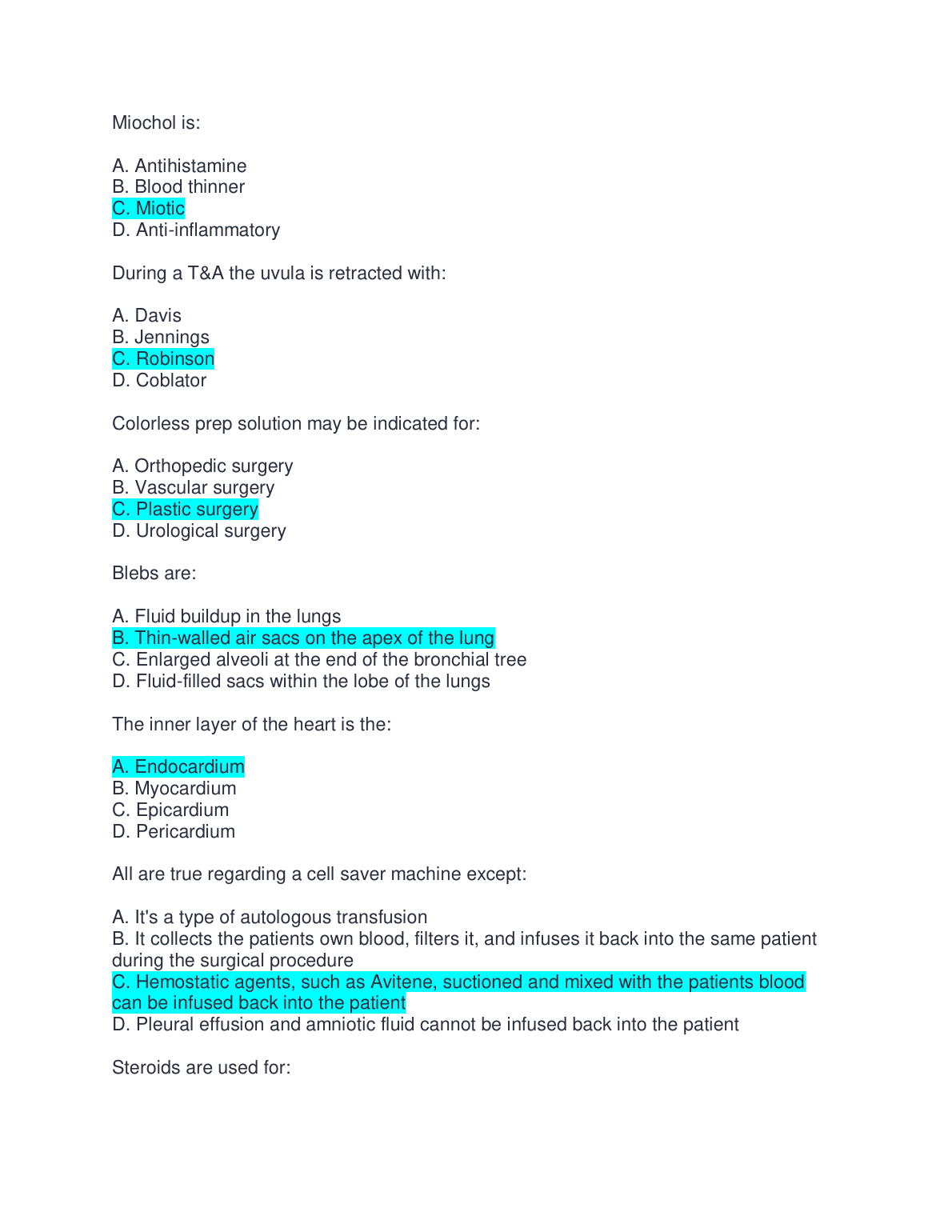 SRGT 2130 Surgical Technology Practice Exam 2 - Test Bank with Correct Answers