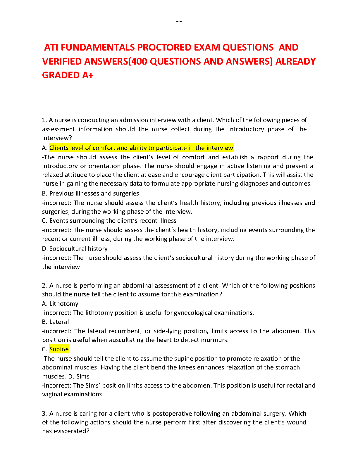 ATI Fundamentals Proctored Exam Test Bank: 400+ Verified Questions and Answers for an A+ Grade