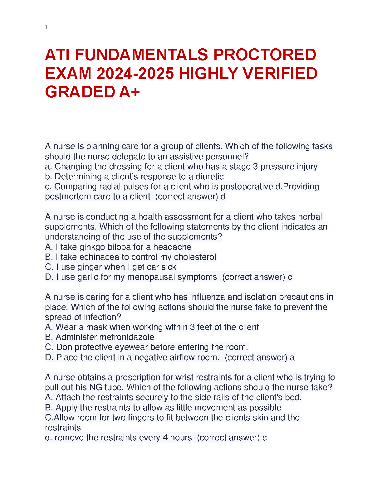 Master your nursing studies with the complete ATI Fundamentals Proctored Exam Test Bank for the 2024-2025 session. This resource features a comprehensive collection of highly verified, A+ graded questions and their correct answers, designed to mirror the actual exam. Sharpen your knowledge on crucial topics such as patient care delegation, infection control protocols, patient safety, and health assessments. This essential study guide is your key to understanding the exam format, practicing with confidence, and achieving an excellent score on your ATI Fundamentals assessment.