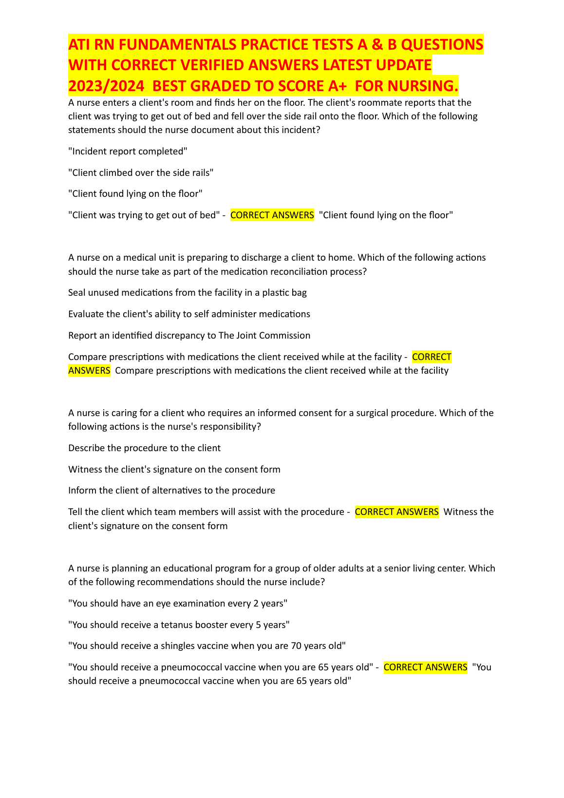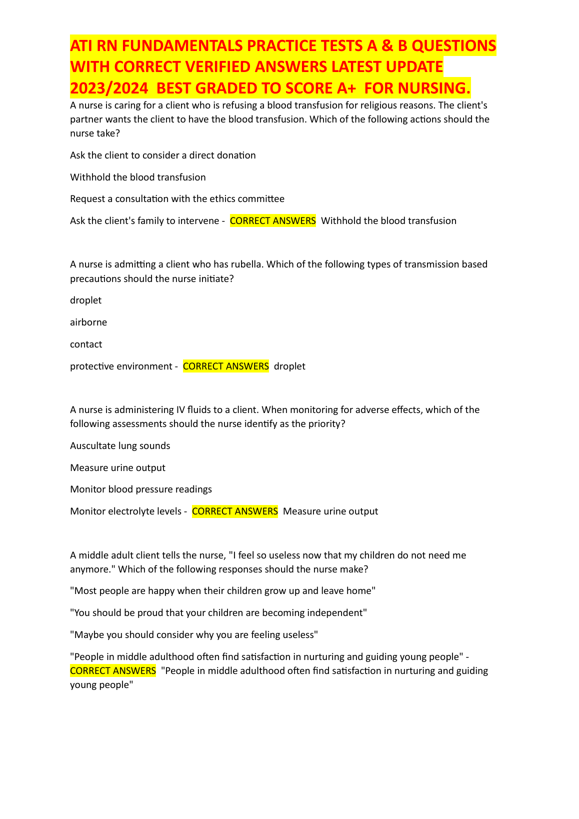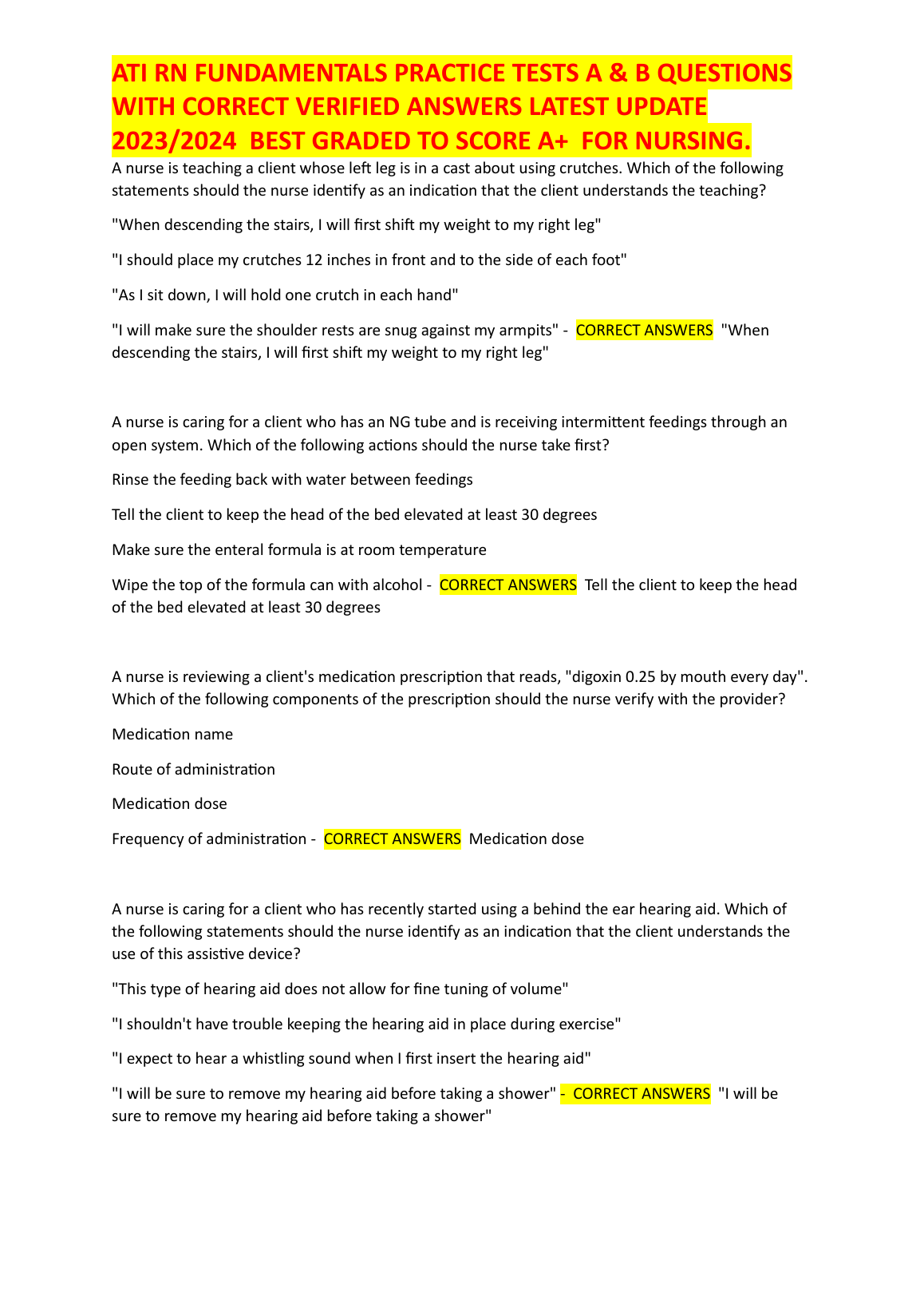 ATI RN Fundamentals 2023/2024 Test Bank by ATI Nursing Education | Practice Tests A & B with Verified Answers