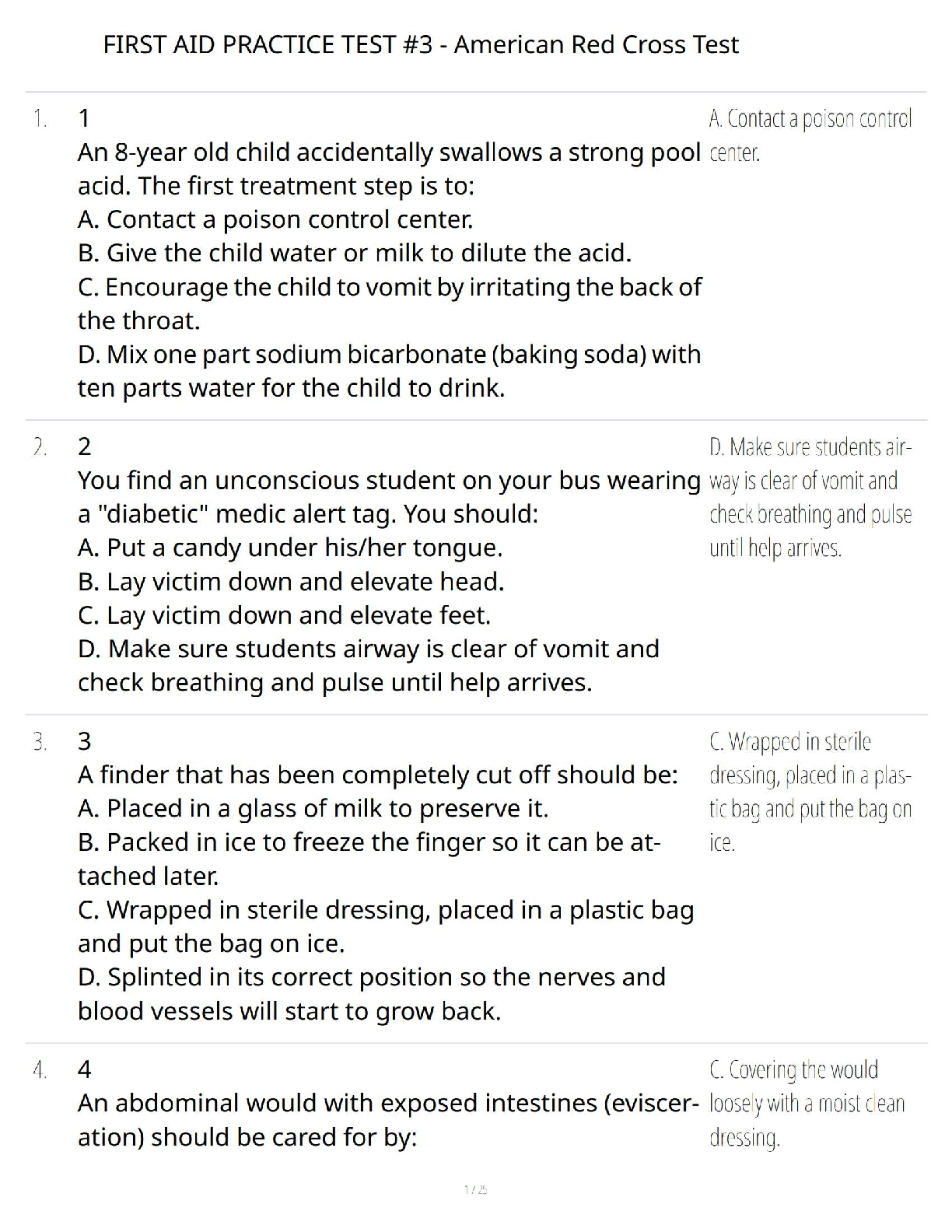 Ace your American Red Cross First Aid, CPR, and AED certification exam with our comprehensive and verified test bank. This study guide is packed with practice questions and detailed answers covering critical emergency scenarios, including poisoning, diabetic emergencies, severe wounds, and amputations. Designed to reflect the actual exam, this resource is your key to mastering essential life-saving skills, building confidence, and passing your certification on the very first attempt. Download now and get fully prepared to become a certified first responder.